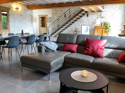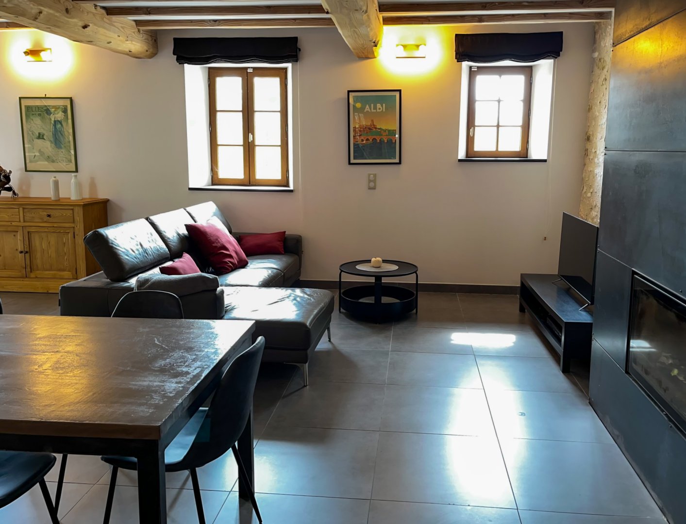 Sa surface de 192 m², ainsi que son décor sur le thème de la peinture et de TOULOUSE LAUTREC, en font un gîte d'exception alliant 3 matériaux : bois, pierre et métal.