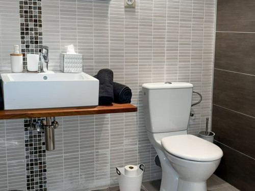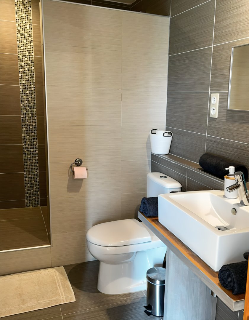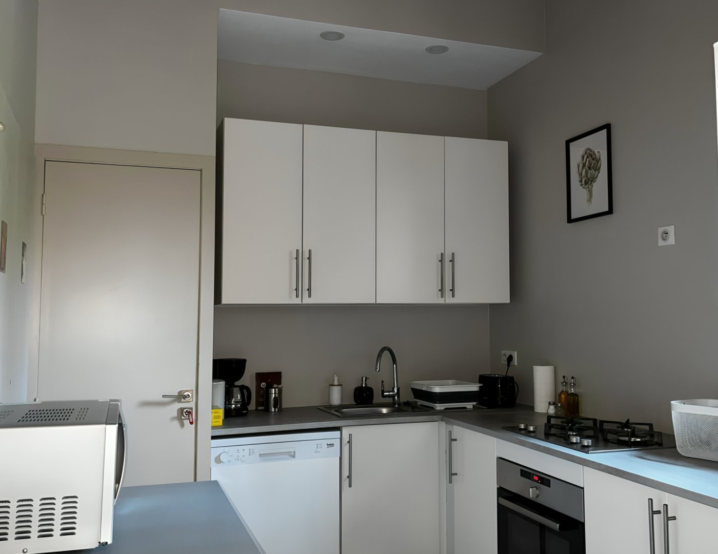 La cuisine est totalement équipée pour vous faciliter votre séjour (four, micro-ondes, lave-vaisselle, cafetière, bouilloire, grille-pain, …)