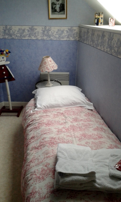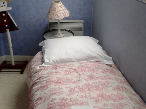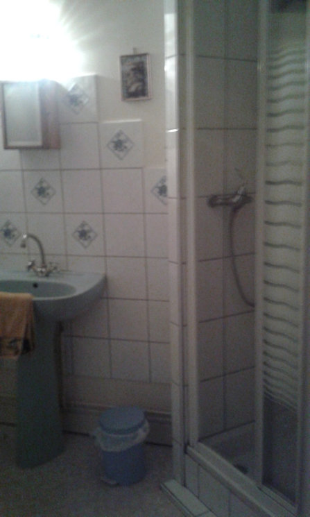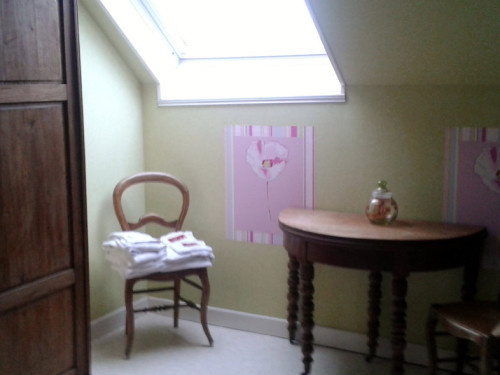 Au 1er étage, vous trouverez 2 chambres (une grande et une petite) et une salle de bain avec douche, toilette et lavabo.