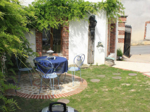 Savourez une flûte de Champagne dans un espace jardinet avec barbecue et salon de jardin.