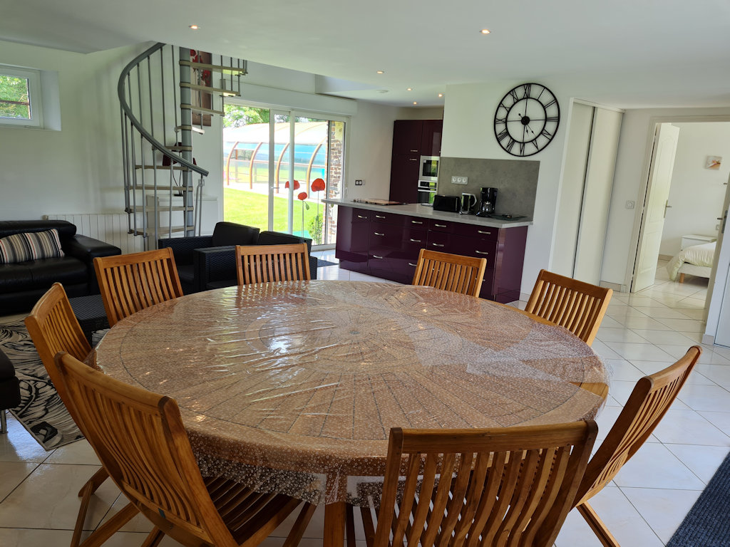 Nous avions réservé les 3 gîtes pour notre famille. Nous étions 14 dont 7 enfants de 18 mois à 8 ans. La propriété est magnifique, entièrement sécurisée et superbement entretenue par les propriétaires Désiré et Cécile son épouse. Les gîtes sont très bien équipés pour des groupes comme le nôtre. Le jardin est très spacieux et équipé d'une piscine couverte chauffée à 29 degrés et nettoyée quotidiennement par les propriétaires qui habitent à côté. Tables de ping-pong et portique de balançoire viennent complétés les distractions des enfants. Nous nous situons à moins de 30 minutes des plages et ports locaux. Le séjour s'est très bien passé malgré une météo maussade. Tous les contacts avec les propriétaires depuis le début du processus de réservation jusqu'à la fin du séjour ont été conviviaux et spontanés. Merci à Cécile et Désiré pour leur amabilité. Nous recommandons chaudement cet endroit de vacances!