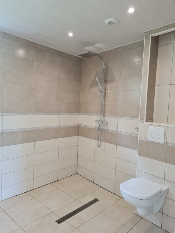 Sur 160 m² rez-de-chaussée : salle salon cuisine (60 m²), une chambre + salle d'eau (WC); à l'étage : 2 chambres + salles d'eau, une chambre, une salle de bain, WC