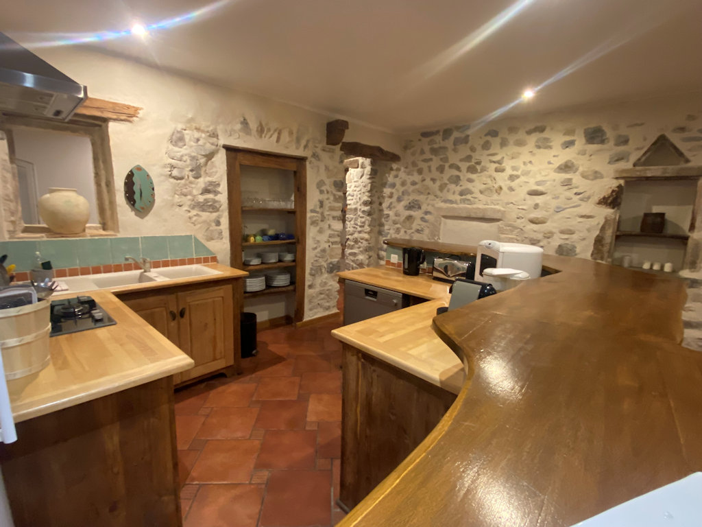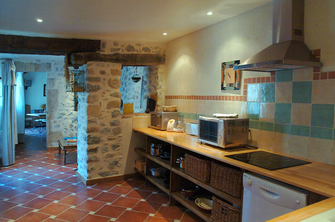 La Bastide vous propose 300m2 de logement à l'étage, répartis en 3 grands gîtes de charme mitoyens tout en pierres de pays, chaux et tadelakt, tout confort avec chacun une cuisine entièrement équipée, un vaste salon tv-séjour, et un total de 9 belles chambres doubles, 4 salles d'eau doubles et 4 WC.