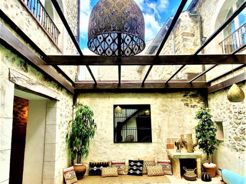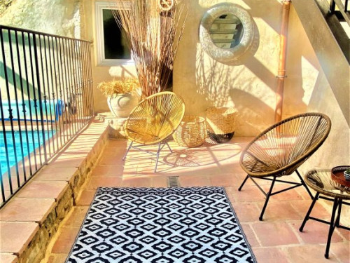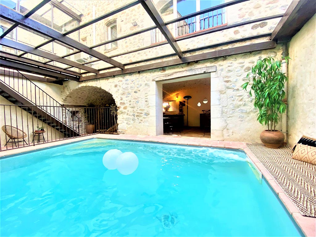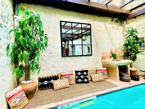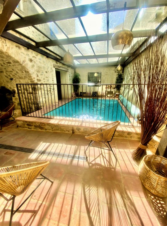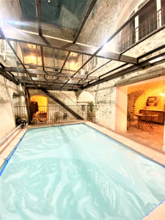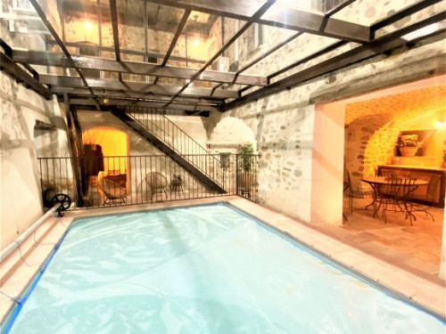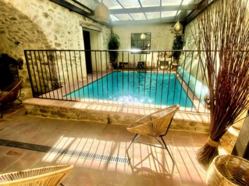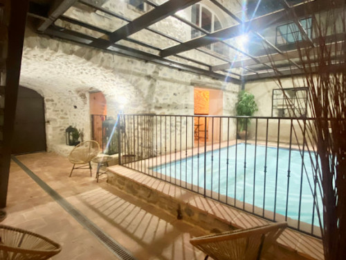 - Très original, un PATIO caché à l'intérieur des murs et couvert par une verrière, abrite une jolie PISCINE-BASSIN sécurisée de 6x4x1.50m et chauffée toute l'année entre 28 et 30°.
