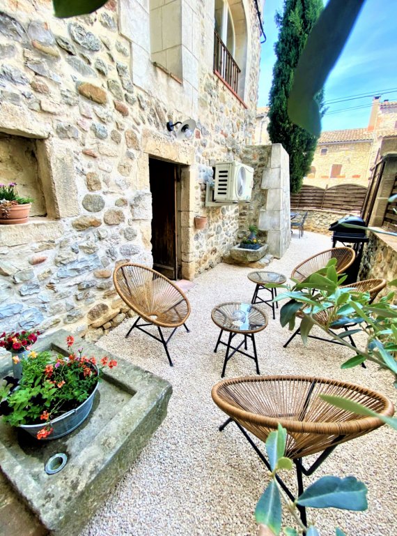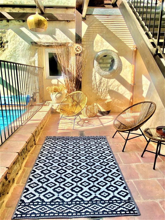 - A l’arrière de la Bastide, donnant sur une petite rue du hameau, et seul espace extérieur de notre structure, une petite cour close de 35m2 avec quelques chiliennes et fauteuils bas, barbecue.