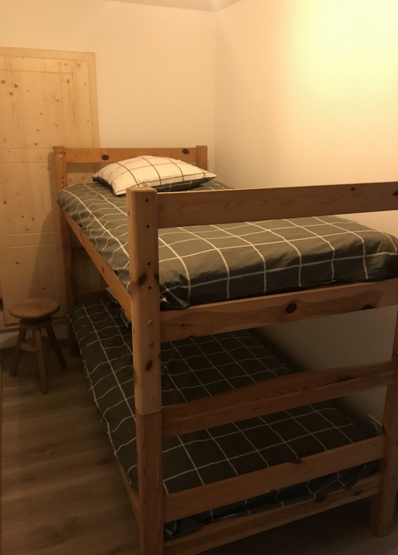 Upstairs, two bedrooms with 140 cm beds and a mountain corner with bunk beds will welcome you to peaceful nights.
