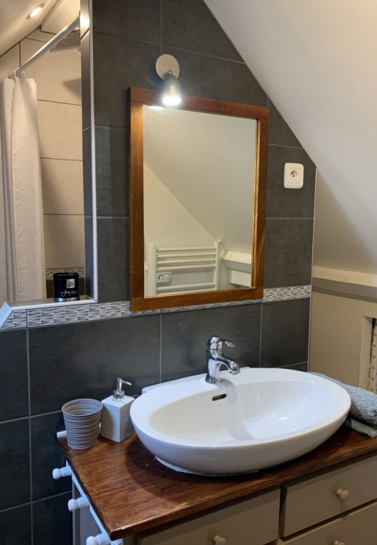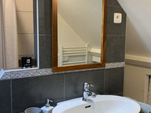 - Salle de bains avec WC, et radiateur sèche-serviettes