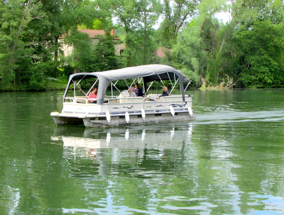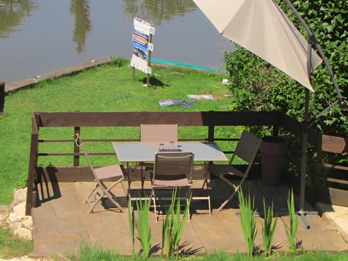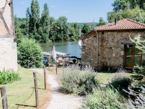 À quelques mètres du Lot, avec ponton flottant de 10 m et barque privative (option moteur disponible)