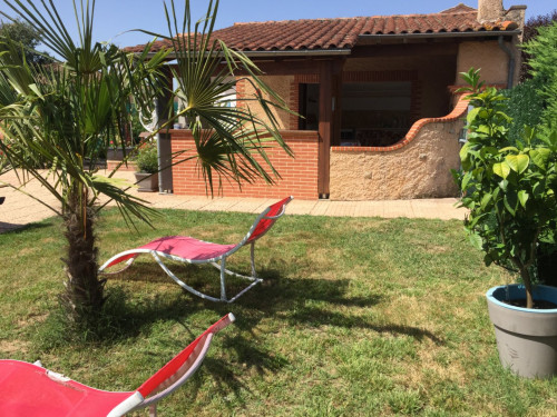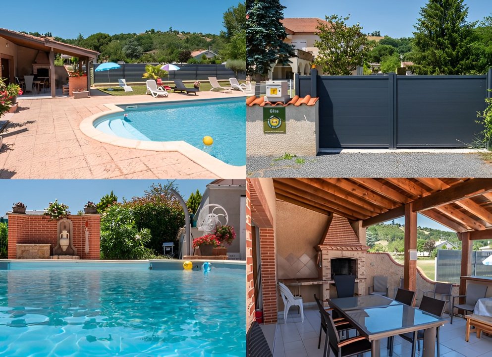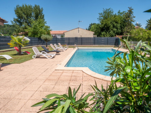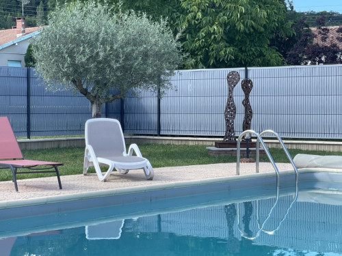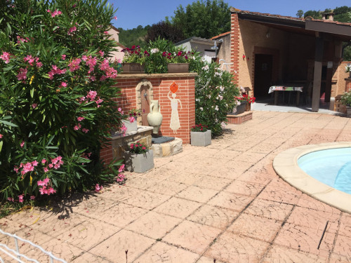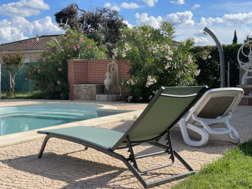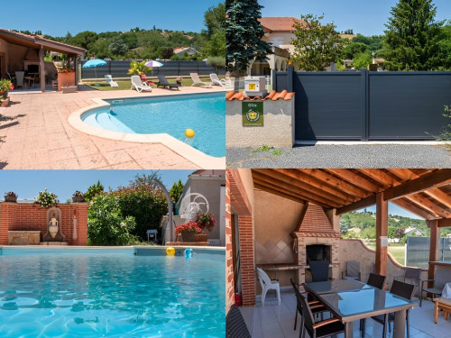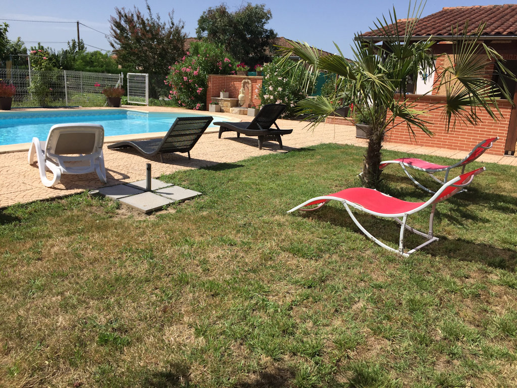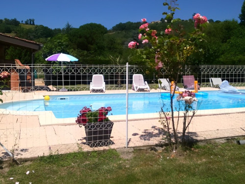 À Lescure-d’Albigeois, louez un appartement indépendant de plain-pied dans une villa au calme, avec piscine privative 12 × 6 m, terrasse plein sud, jardin clos et parking privé fermé.