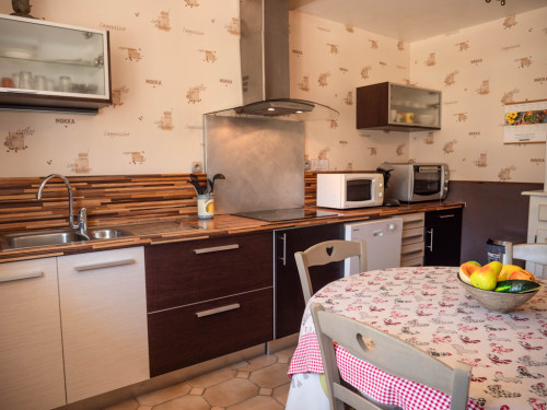 • Cuisine équipée : plaques induction, four, lave-vaisselle, micro-ondes, frigo-congél., cafetière, bouilloire