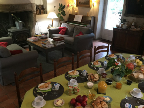 Il est également proposé de prendre le petit déjeuner selon la saison et sur demande, en supplément, dans notre maison d'hôtes 3 épis, qui se situe en face dans la même rue ! (10 € / pers.)