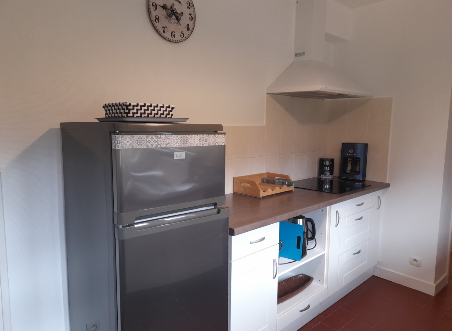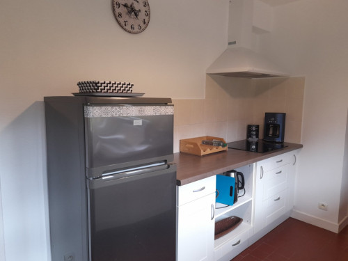 - une cuisine aménagée (frigo avec compartiment congélateur, four micro-ondes, grille-pain, cafetière, bouilloire …)