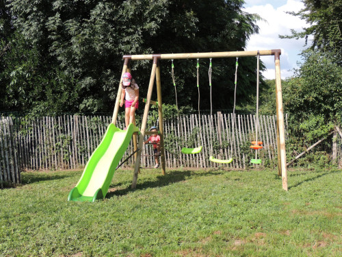 Jardin clos, jeux, portique pour enfants, malle à jouets, jeux de société, DVD enfants.