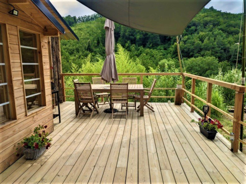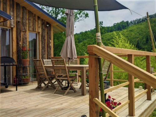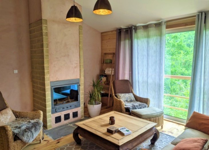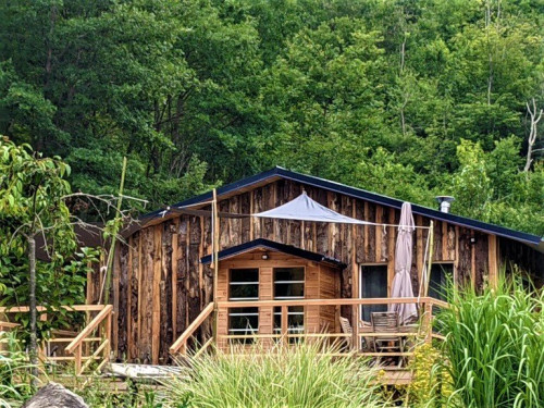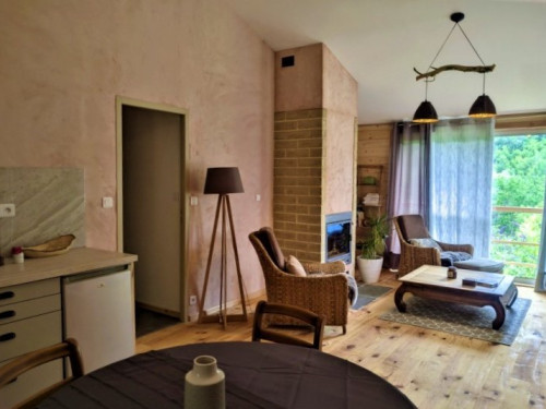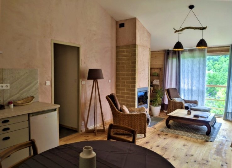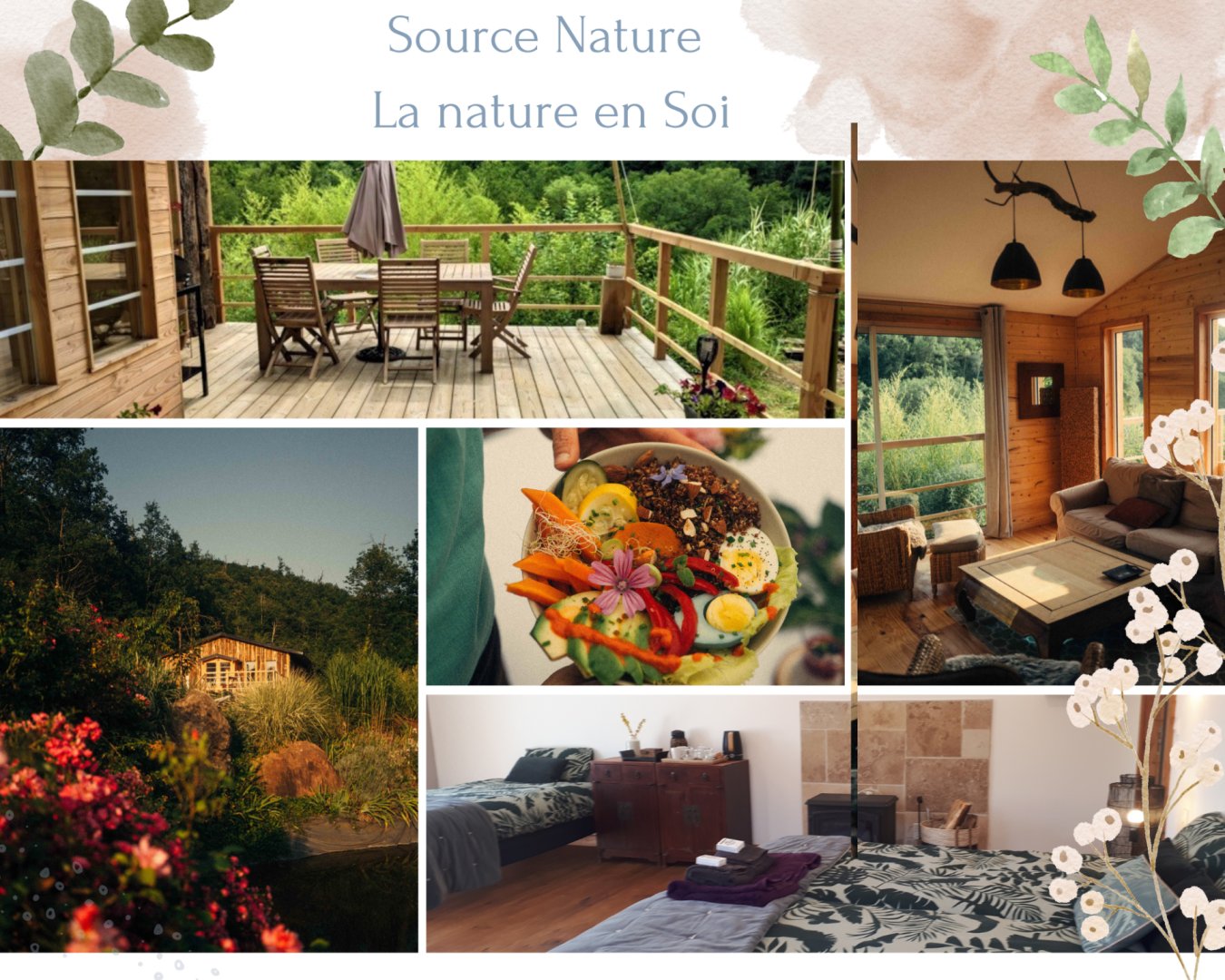 Le domaine "Source Nature" est autonome en électricité. Des panneaux solaires alimentent le gite, Les propriétaires viennent dans un maison en bois sur le lieu le lieu possède cinq chambres d'hôtes 3 épis en chalet spacieuses et confortables. Rivière et chemin de St Jacques de Compostelle sur la propriété.