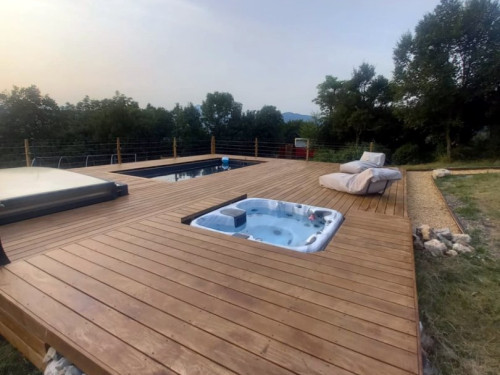 Comfortable cottage, in the heart of the black lands at the foot of Couard, a hikers' paradise, a mecca for mountain biking at the foot of the cottage, surrounded by nature with swimming pool and spa in an area of more than 1 hectare, 2 bedrooms with bathroom bathroom for 4 people + trailer that can accommodate 2 additional people with toilet and shower.