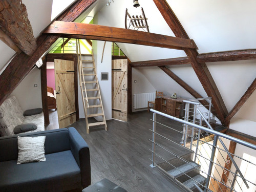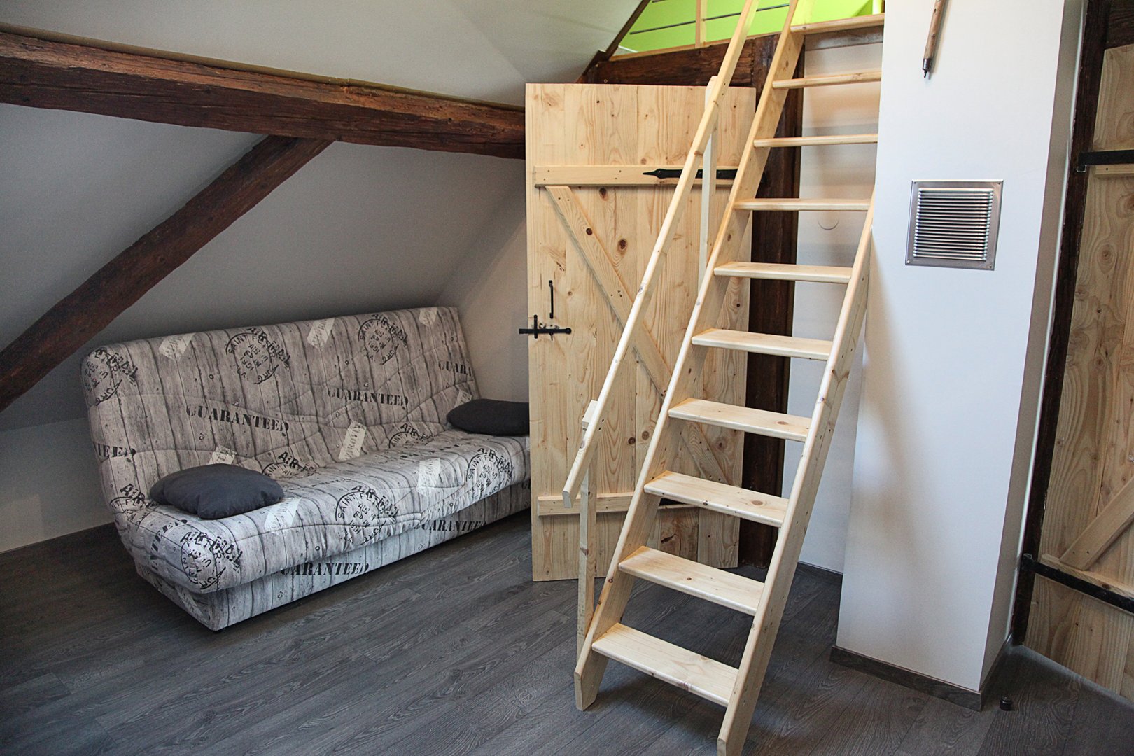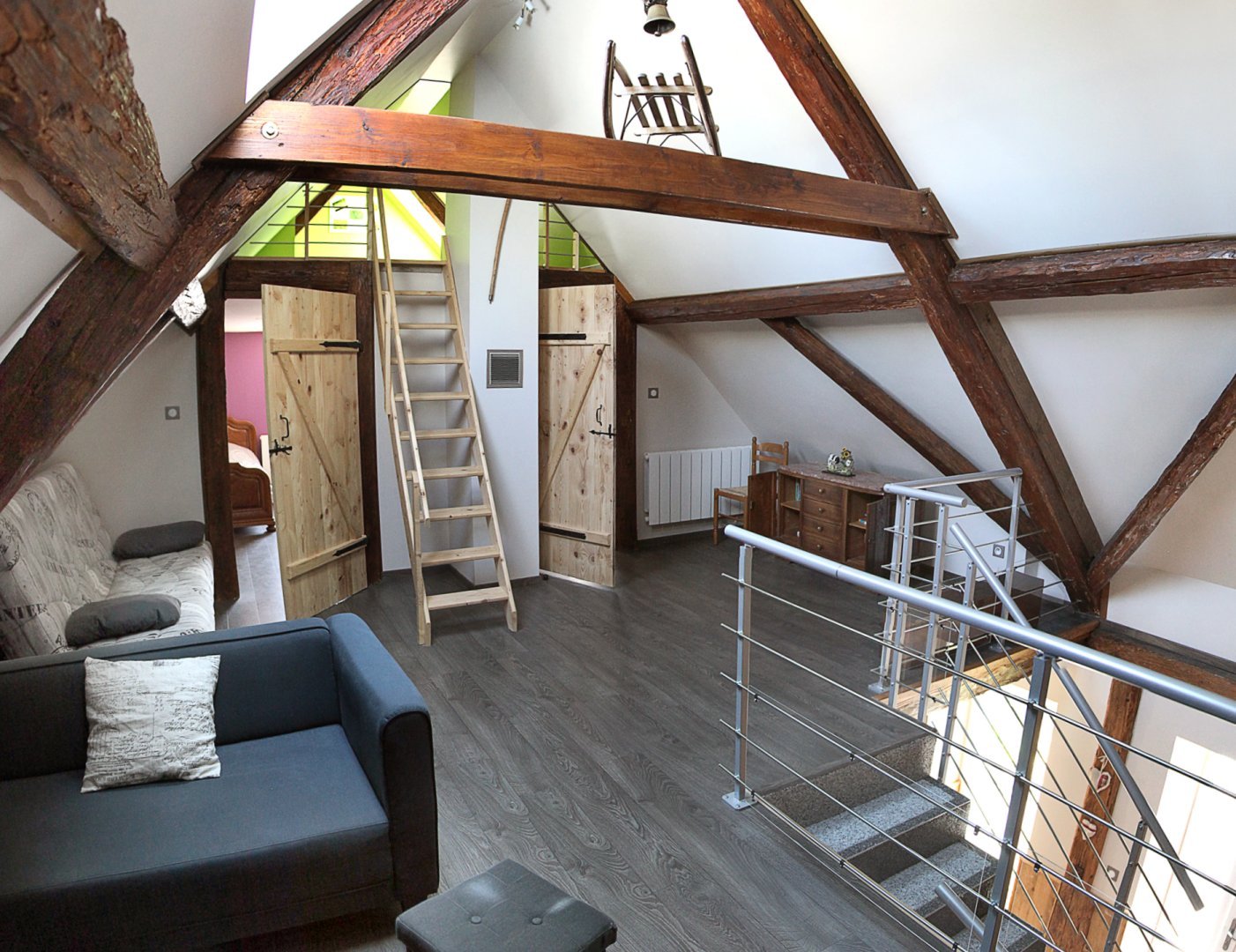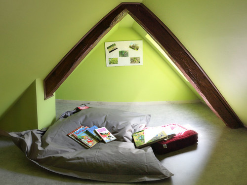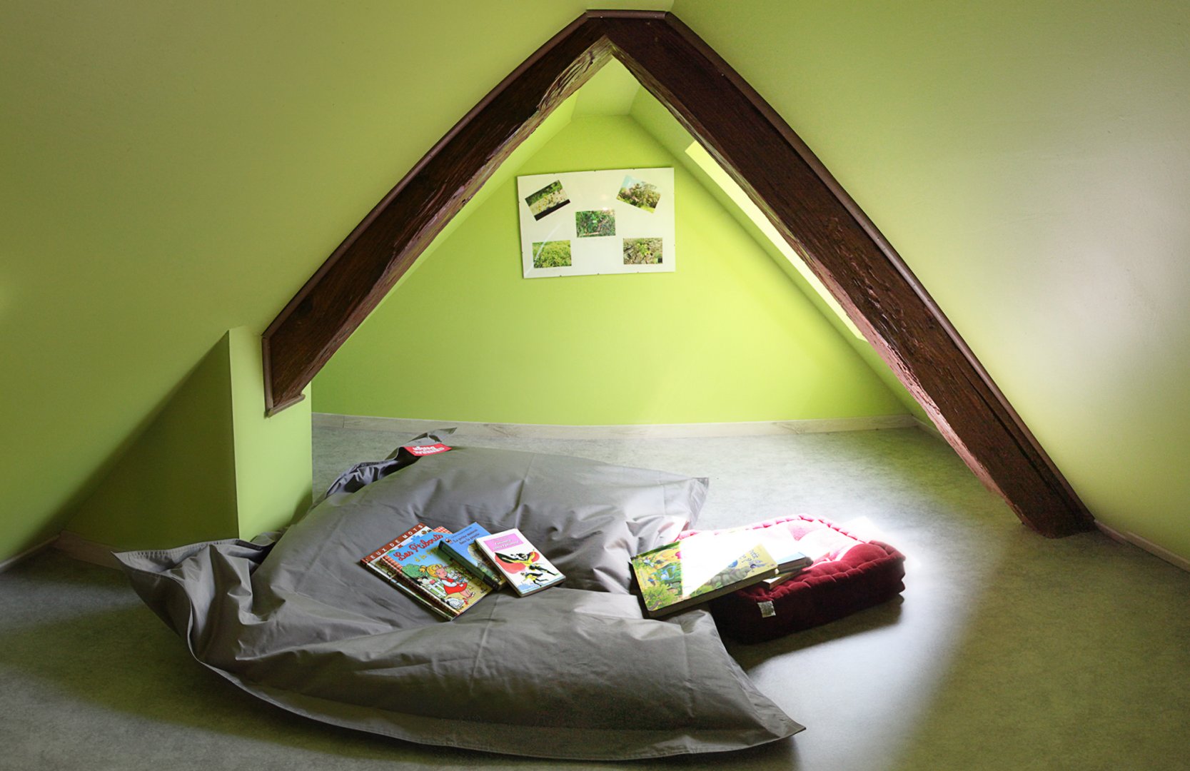 - un coin lecture en mezzanine, idéal pour les enfants, accessible par une échelle