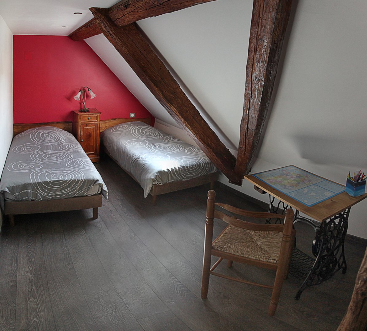 - deux chambres (1 lit de 160x190 et 2 lits de 90x190) équipée chacune d'un coin bureau