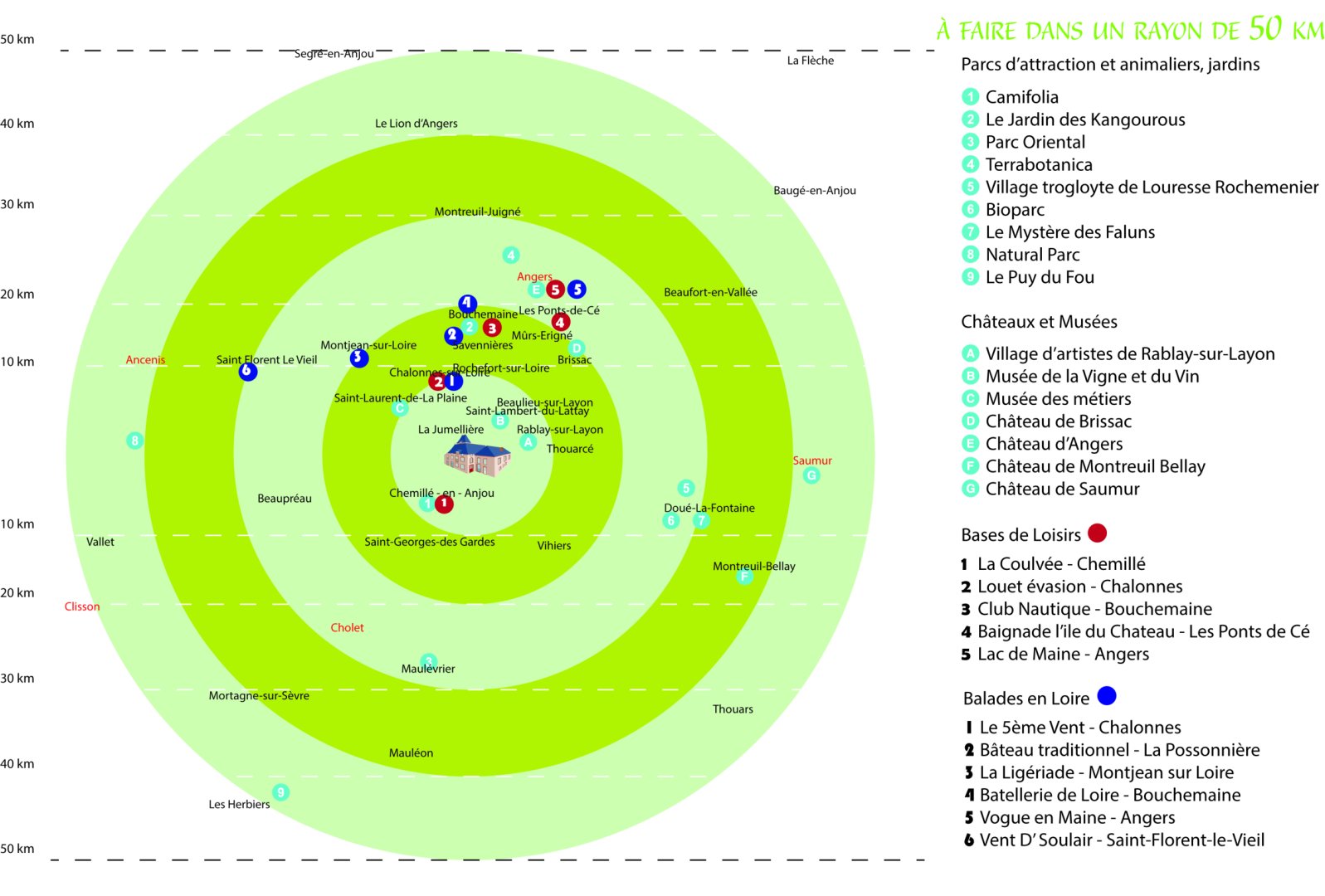 Boucles de randonnées à proximité immédiates, canoë, châteaux, musées, parcs de loisirs ou animaliers, bords de Loire, baignades … les activités en Anjou sont aussi riches que variées.