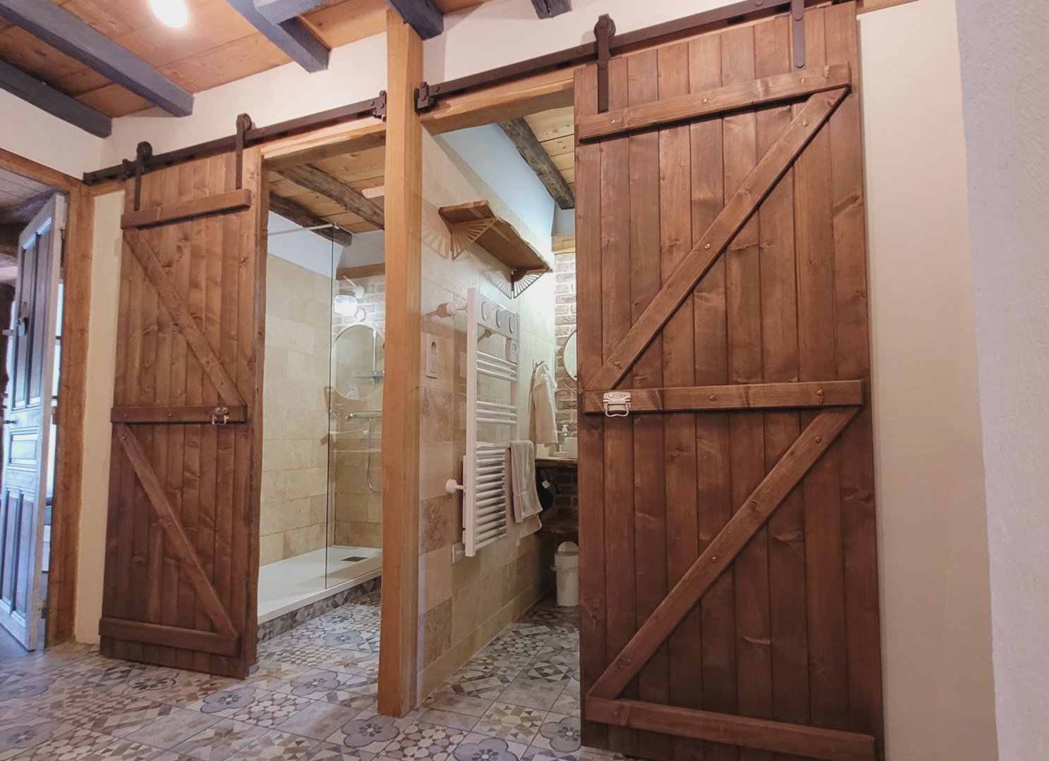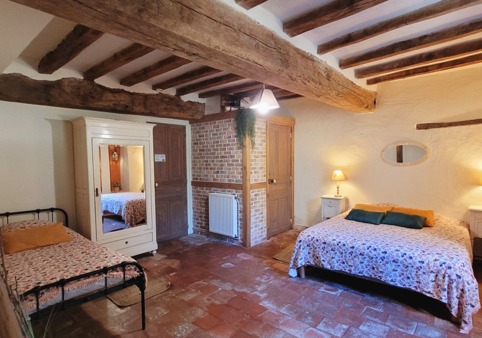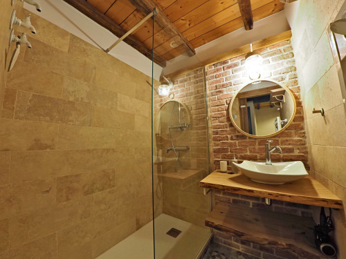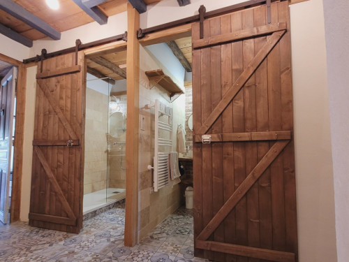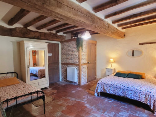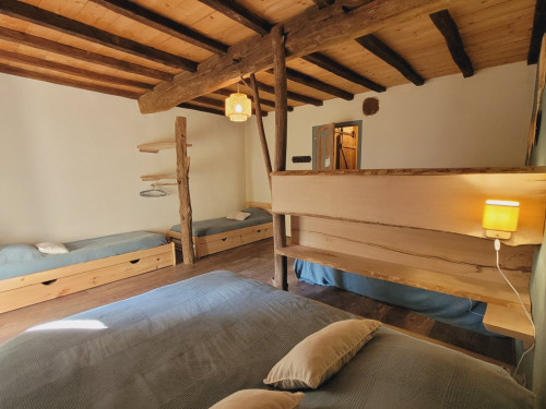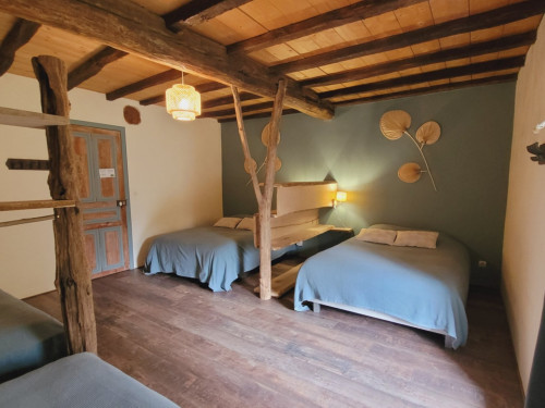 • à l'étage : vous disposerez de 2 chambres, 1 chambre pour 3, et 1 chambre pour 6 à 8 personnes (2 lits doubles et 2 lits gigognes), ainsi que 2 salles d'eau équipées de douche à l'italienne, WC.