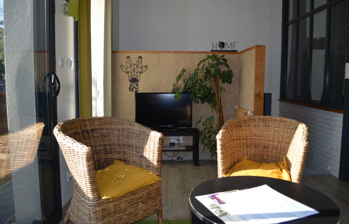(le gîte n'est pas adapté aux personnes à mobilité réduite du fait de la présence de l'escalier qui mène à l'étage où se trouvent la seconde chambre, le salon et la cuisine)