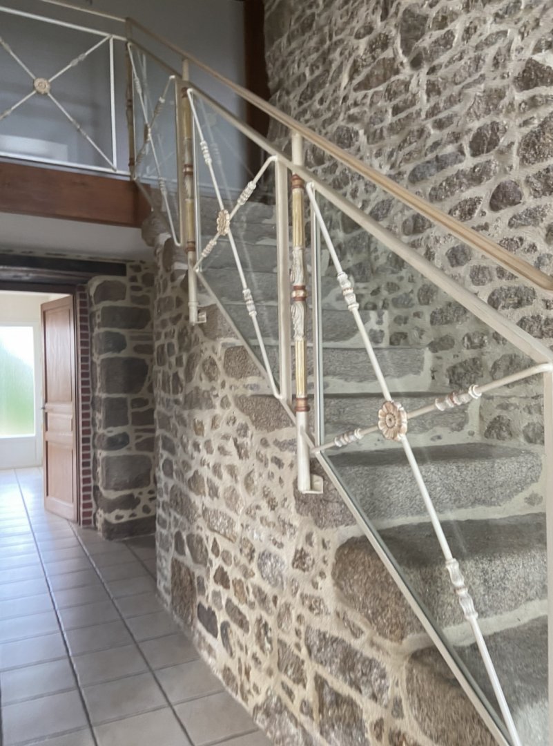A l’étage à droite, 2 chambres + 1 salle de bain + 1 WC séparé.