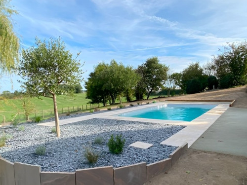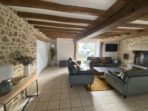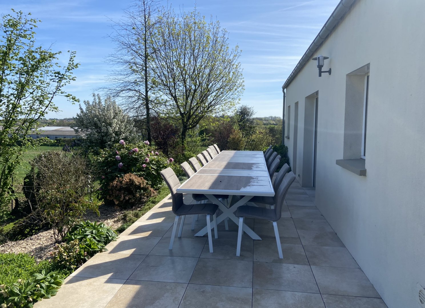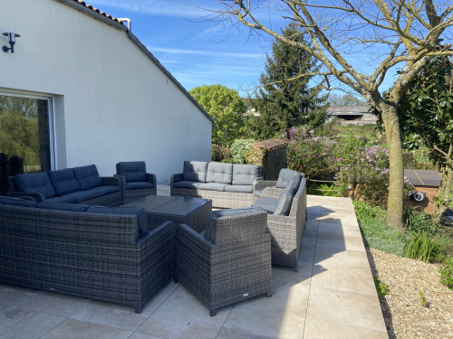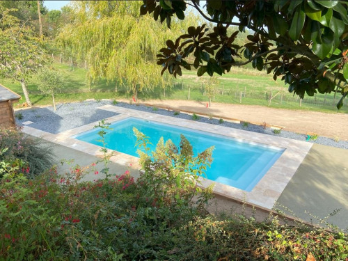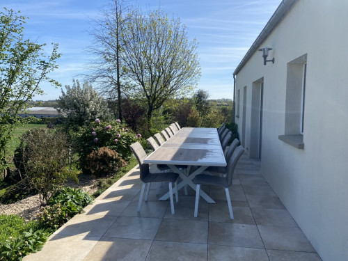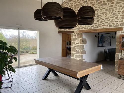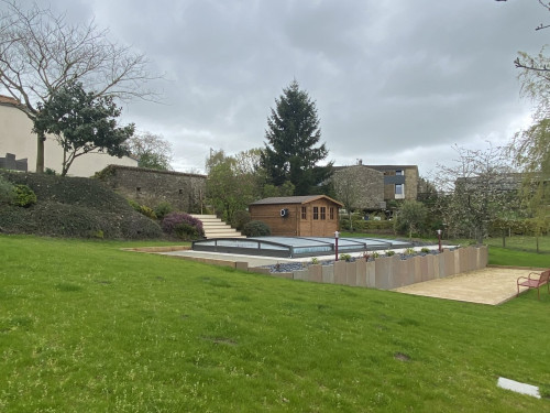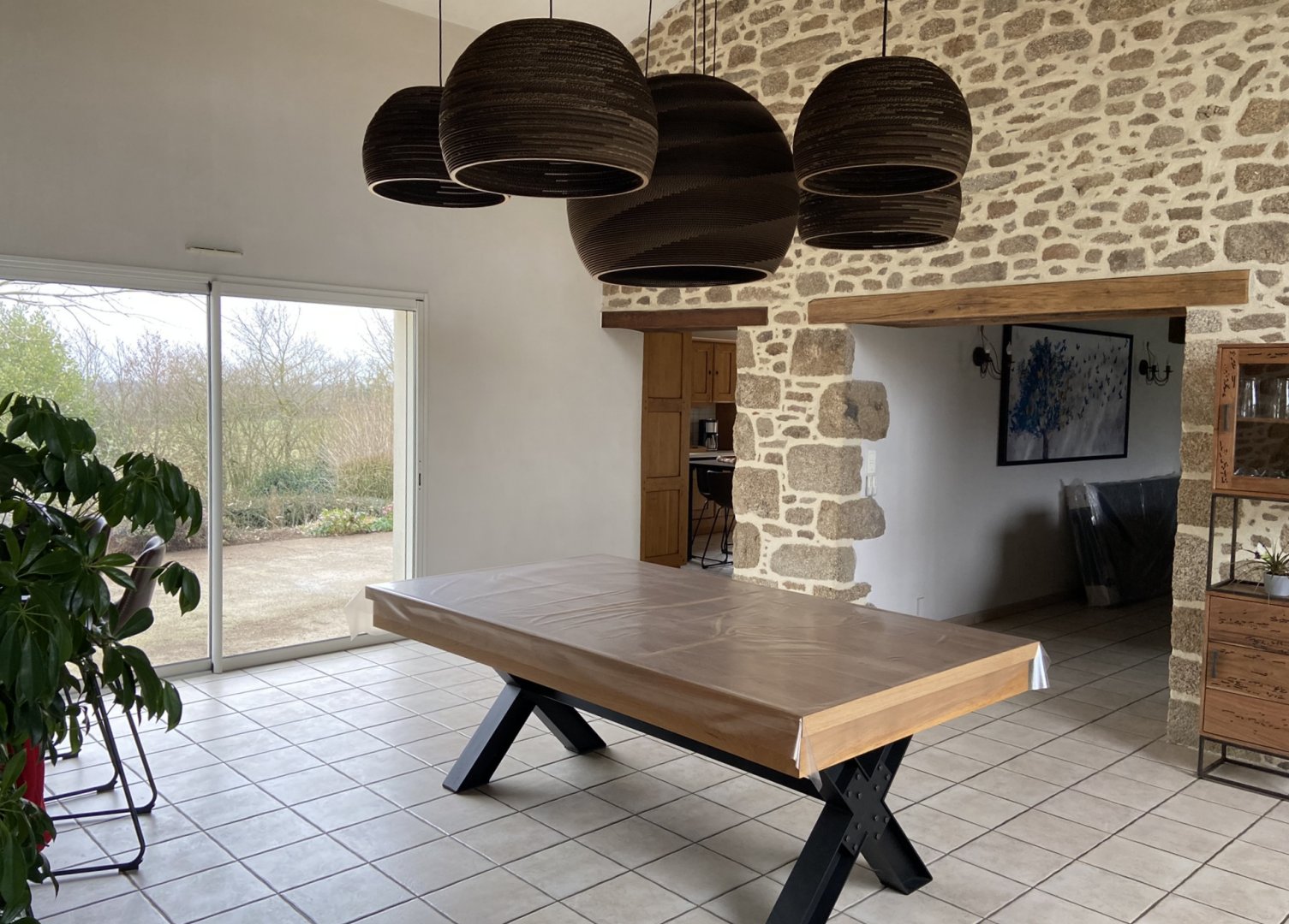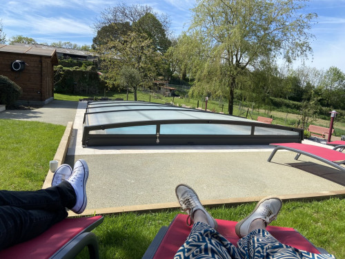 Nos 3 pièces de vie communiquent entre elles (salon, salle de jeux, cuisine 20m²) et donnent sur la terrasse. de celle-ci vous accédez à la piscine de 8x4 avec dôme. A côté, il y a un terrain de pétanque.