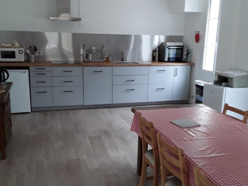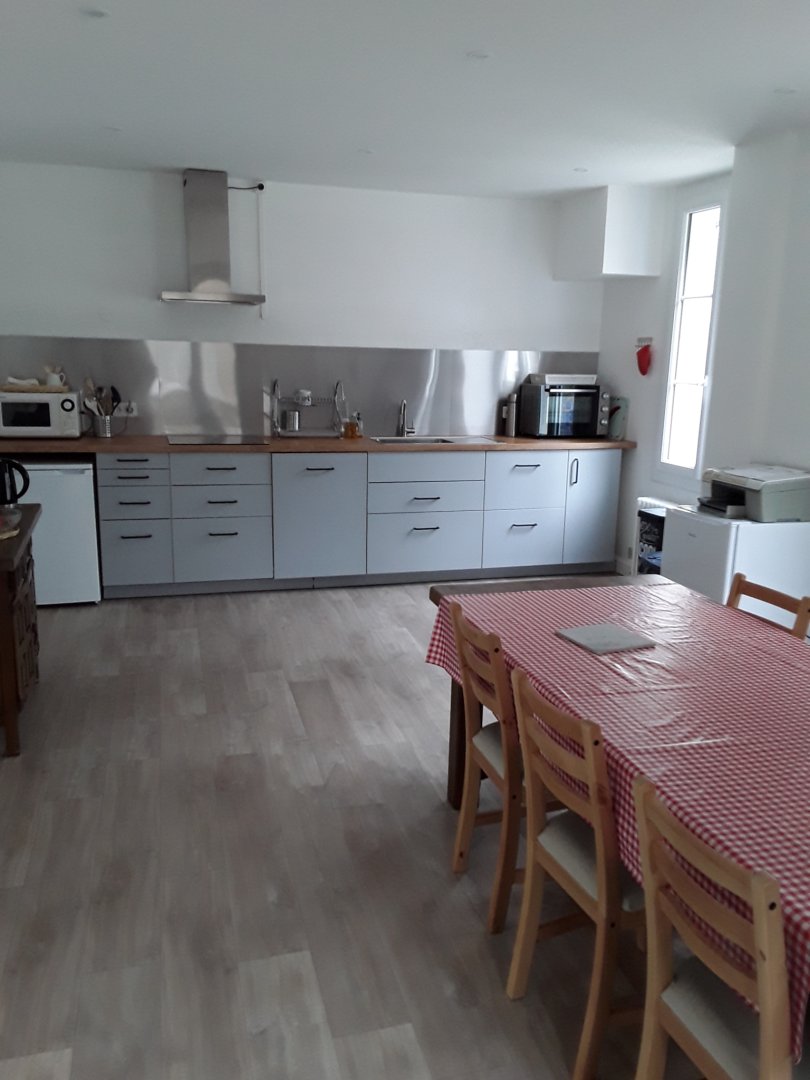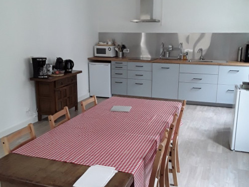 Gîte très lumineux au rez-de-chaussée : pièce de vie cuisine aménagée et équipée ouverte.