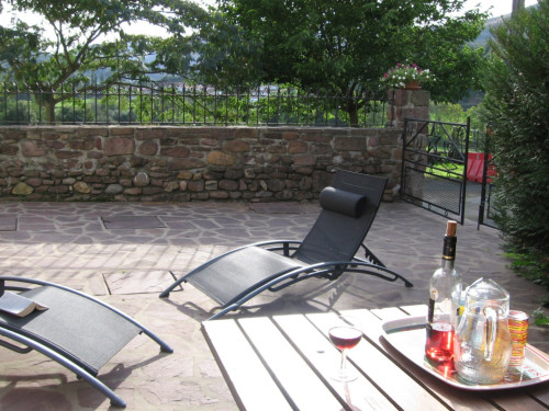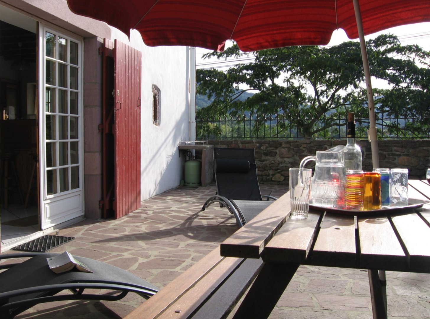 Endroit calme, jolie vue sur la vallée et les montagnes.