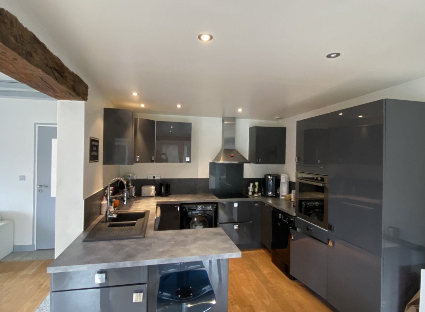 • au rez-de-chaussée : un salon avec télévision, salle à manger, une cuisine entièrement équipée, une chambre avec 1 lit double, WC, salle de bain avec douche italienne