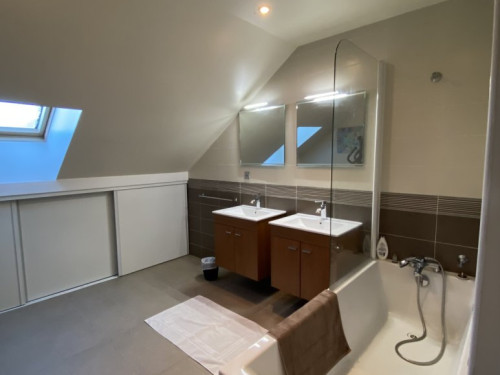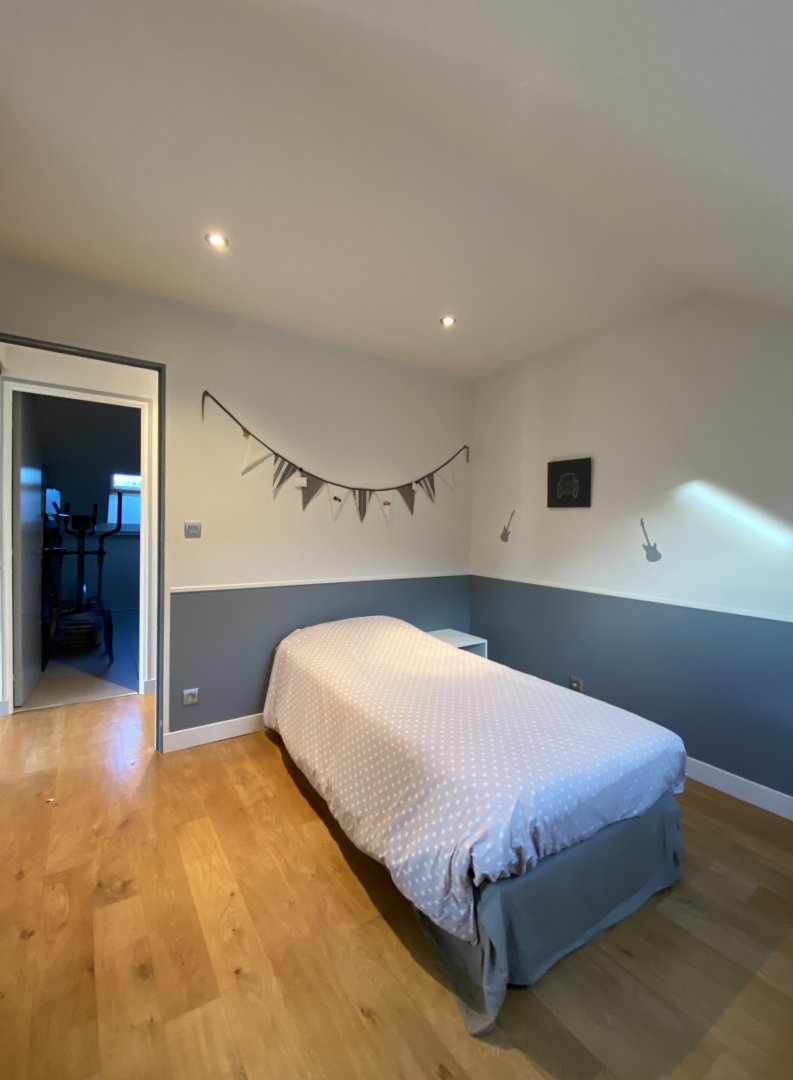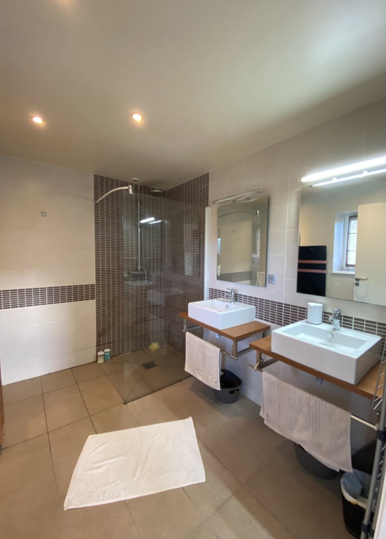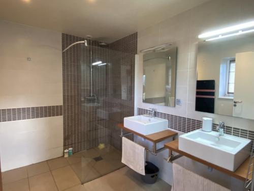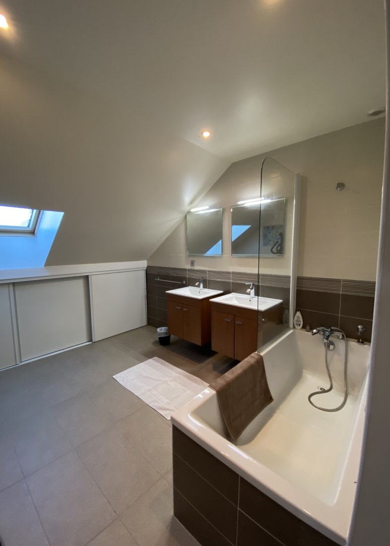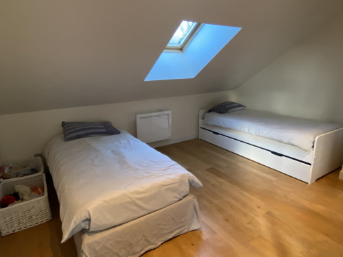 • à l'étage : une chambre avec deux lits simples, 1 chambre avec 1 lit simple et une spacieuse salle de bain avec baignoire.