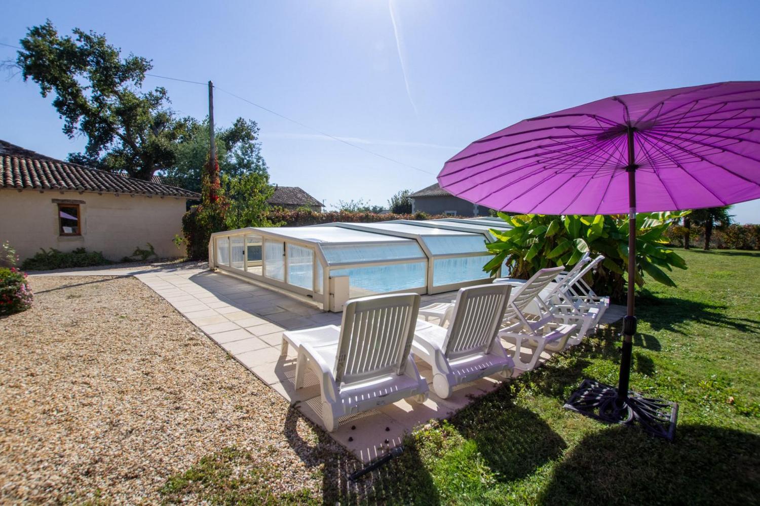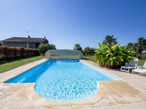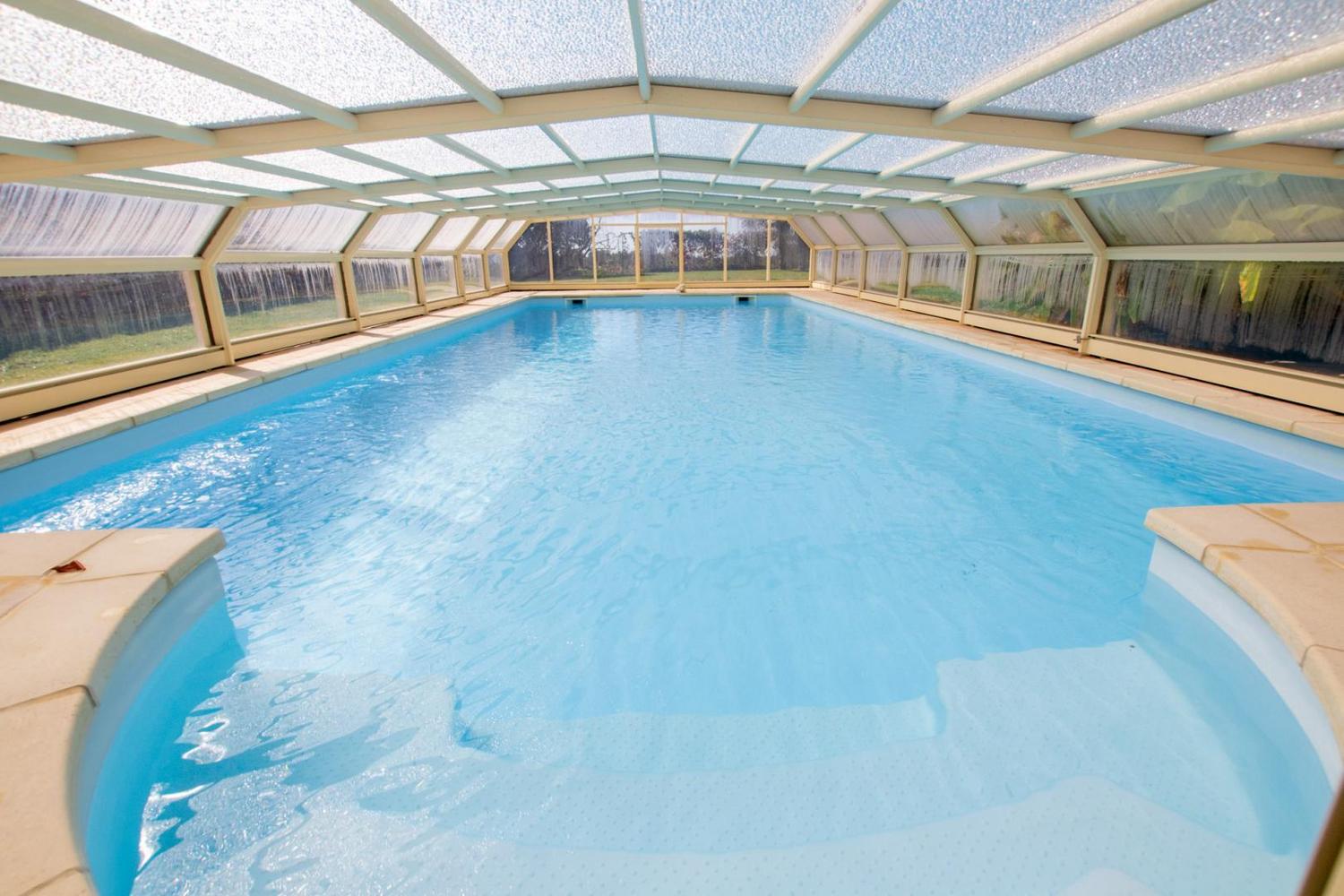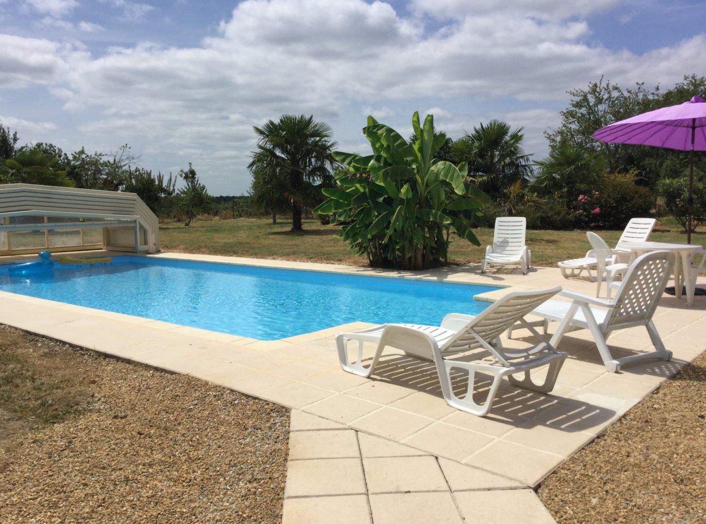 Maison indépendante avec une piscine au sel privative entrée par un escalier roman de dimensions 12 x 6 m profondeur 40 cm jusqu'à 180 cm progressif ouverte de mai à fin septembre sécurisée par dôme (piscine non chauffée).