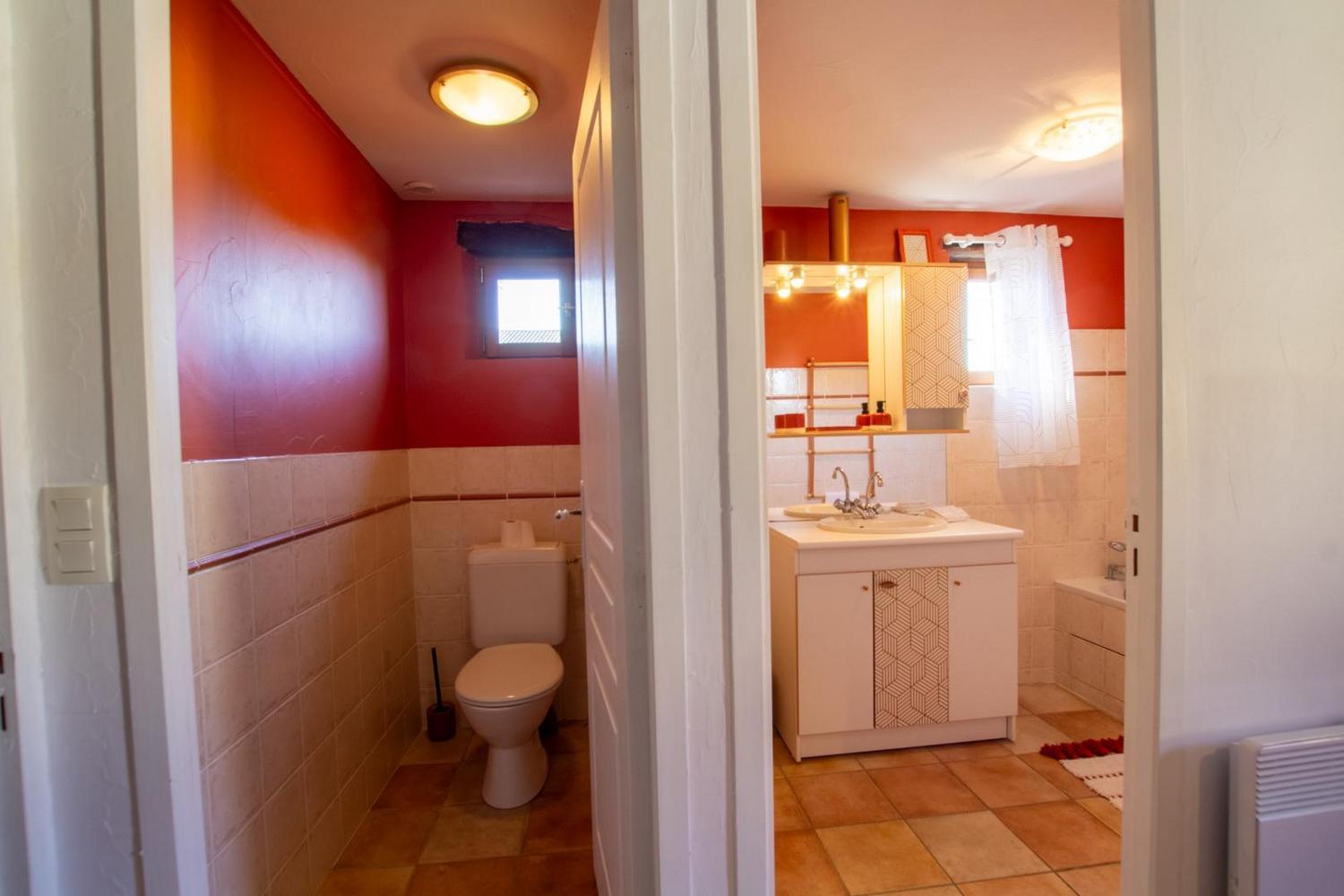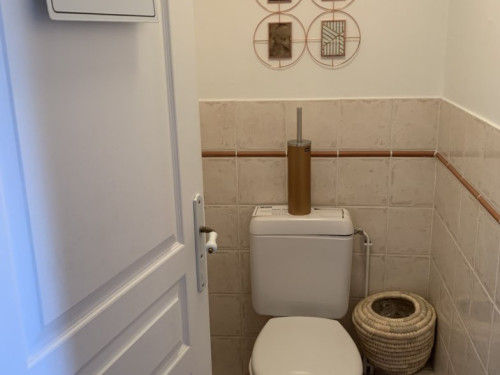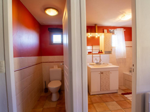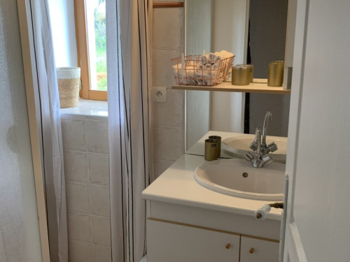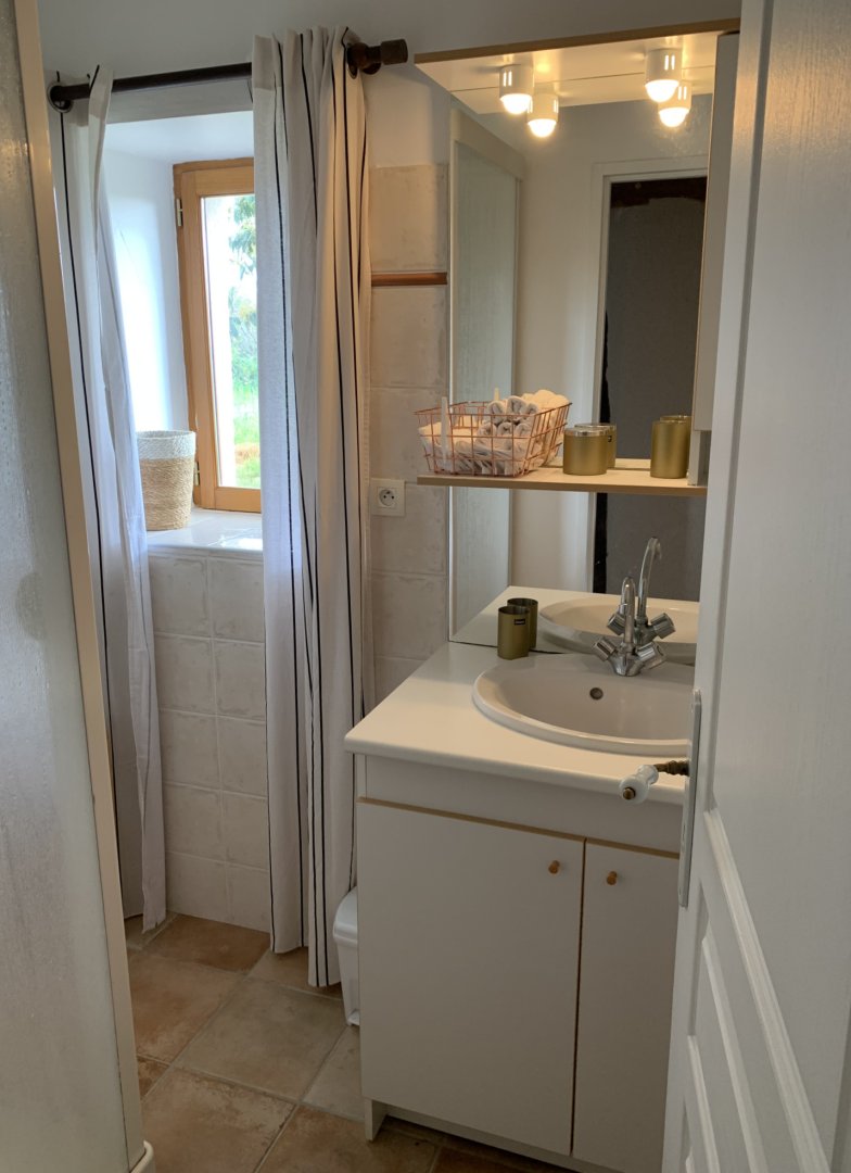 Une salle d'eau avec cabine de douche, WC indépendants.