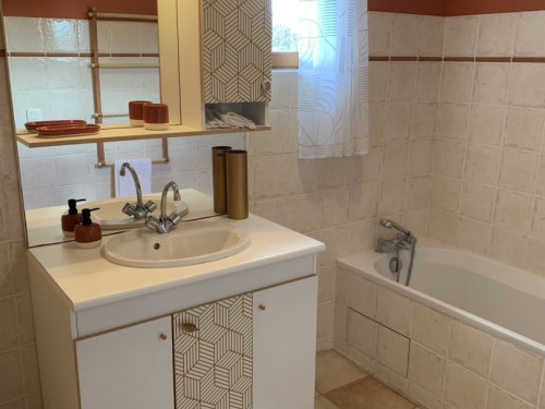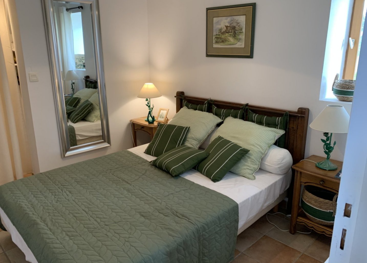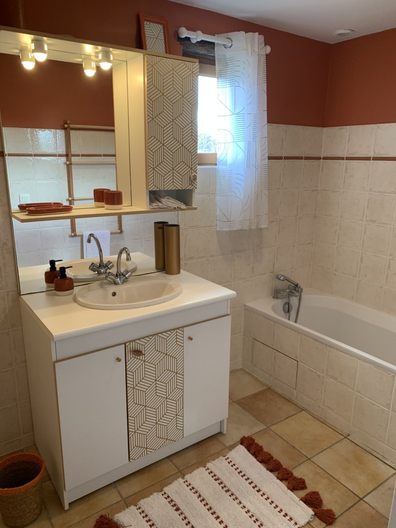 Vous disposez d'une pièce principale, équipée d'une partie cuisine intégrée avec four, micro-ondes, gaz, lave-vaisselle ouverte sur la partie salon (TV, internet, cheminée) et la salle à manger. Vous aurez accès aux 2 chambres : 1ère chambre avec un dressing, le lave-linge, un lit de 140x200 cm, la 2ème chambre avec un lit de 160, une salle de bain et WC privatif.
