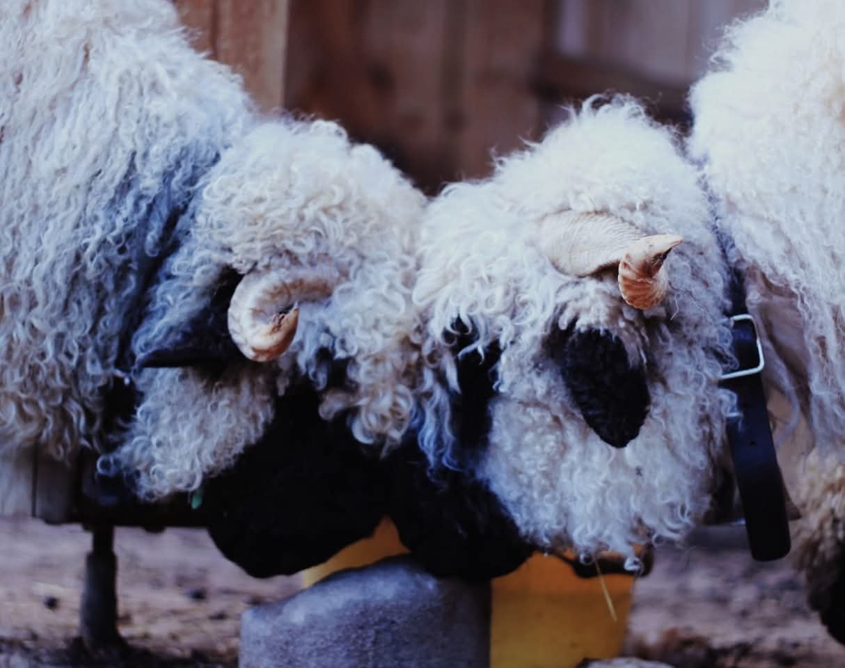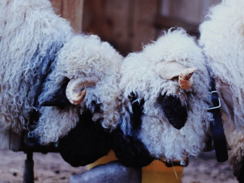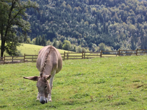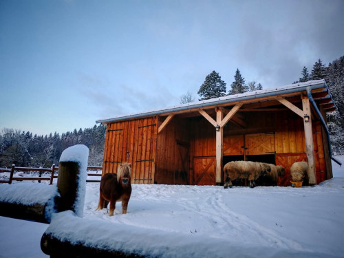 Un accueil fort sympathique au gîte par un âne, une famille de mouton, un bouc une chèvre et un poney !