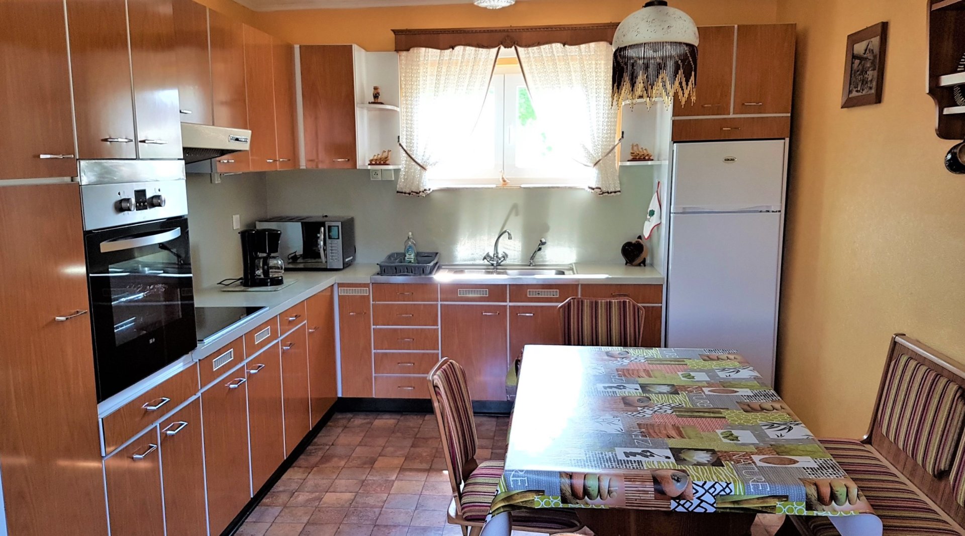 - 1 cuisine équipée d'un four, micro-ondes, plaque de cuisson, frigidaire, lave vaisselle