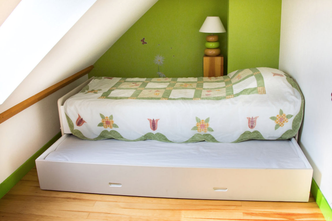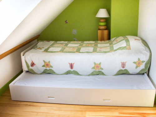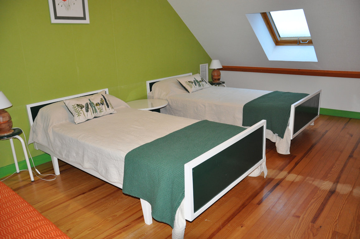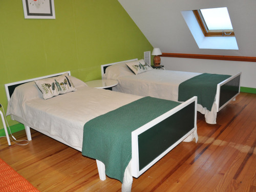 2ème étage : 2 chambres mansardées (2 lits jumeaux de 90 et 2 lits gigognes de 90, clic clac de 140), cabinet de toilettes (vasque et WC).