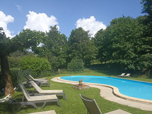 Les extérieurs se composent de deux terrasses dont une avec vue sur la grande piscine du domaine (19 x 9 m).