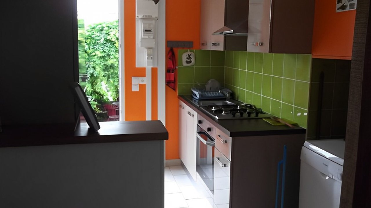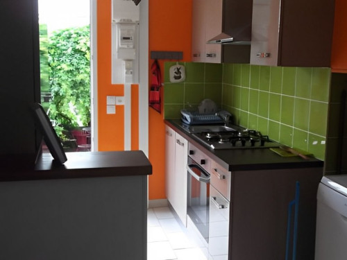 - une cuisine toute équipée : frigo congélateur, four, plaque de cuisson, lave vaisselle, bouilloire, grille pain, cafetière, micro-ondes