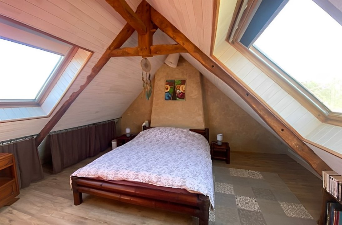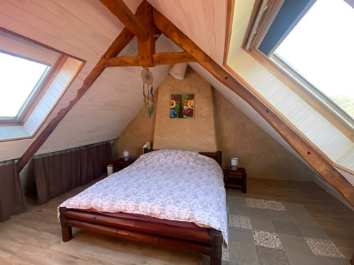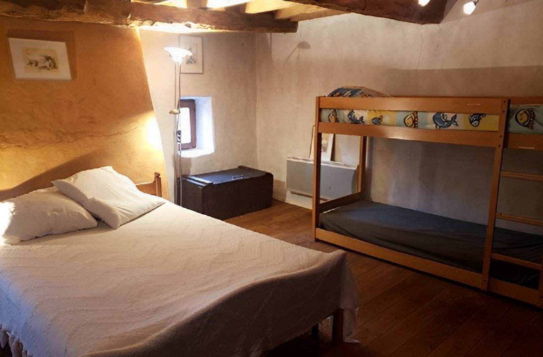 • au 2ème étage, accessible par une échelle de meunier (déconseillé aux personnes avec difficultés de déplacement), vous trouverez 2 autres chambres :