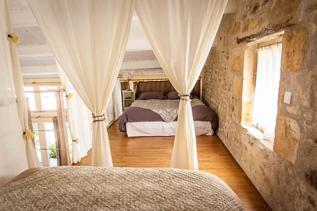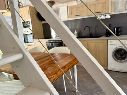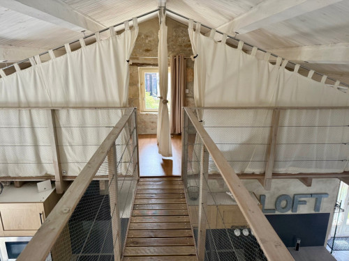 Ce loft avec mezzanine "pont de bateau" vous propose le charme et le calme de l'île du Roy. Ses deux espaces nuit ouverts type Loft mansardé, séparées par des voiles de bateau, proposent chacune un couchage double.