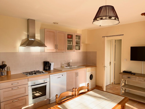 - Cuisine toute équipée : vaisselle pour 10 couverts, batterie complète, cafetière, bouilloire et grille pain