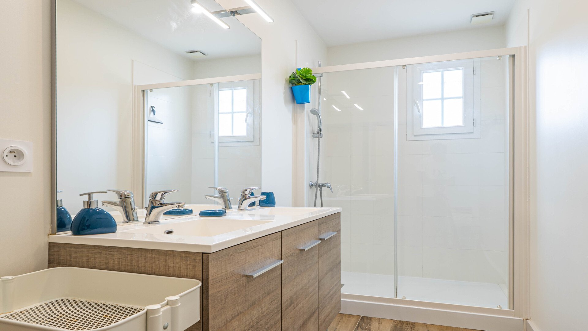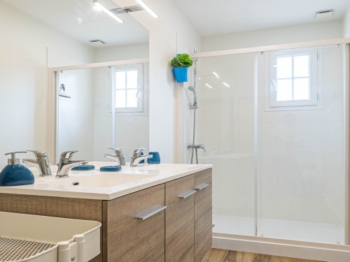 Shower, Vanity sink, Hair-dryer, Towel dryer