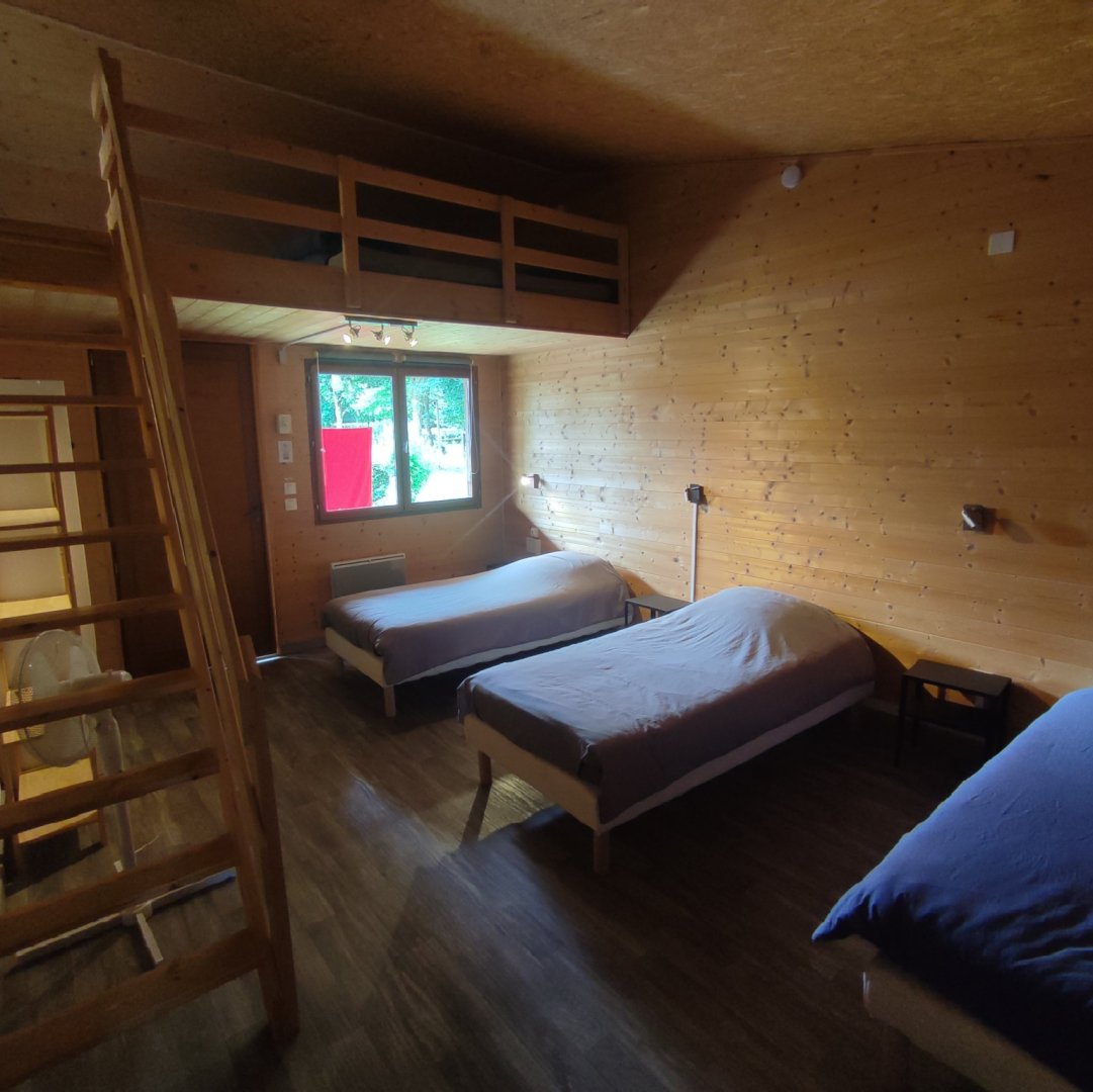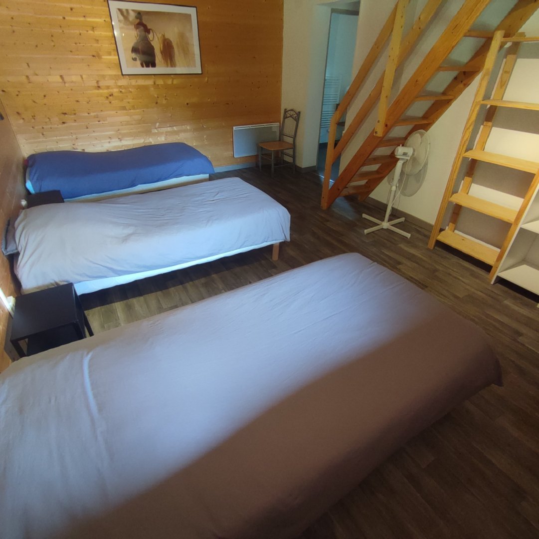 3 lits SIMPLE 90x190 ET 1 matelas DOUBLE 140x190 en mezzanine 1 salle d'eau WC