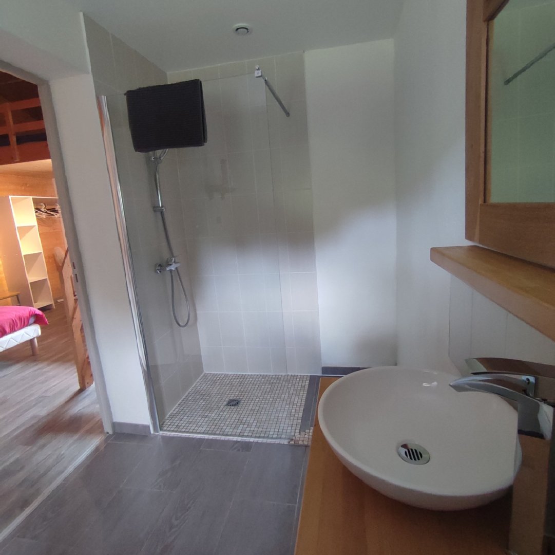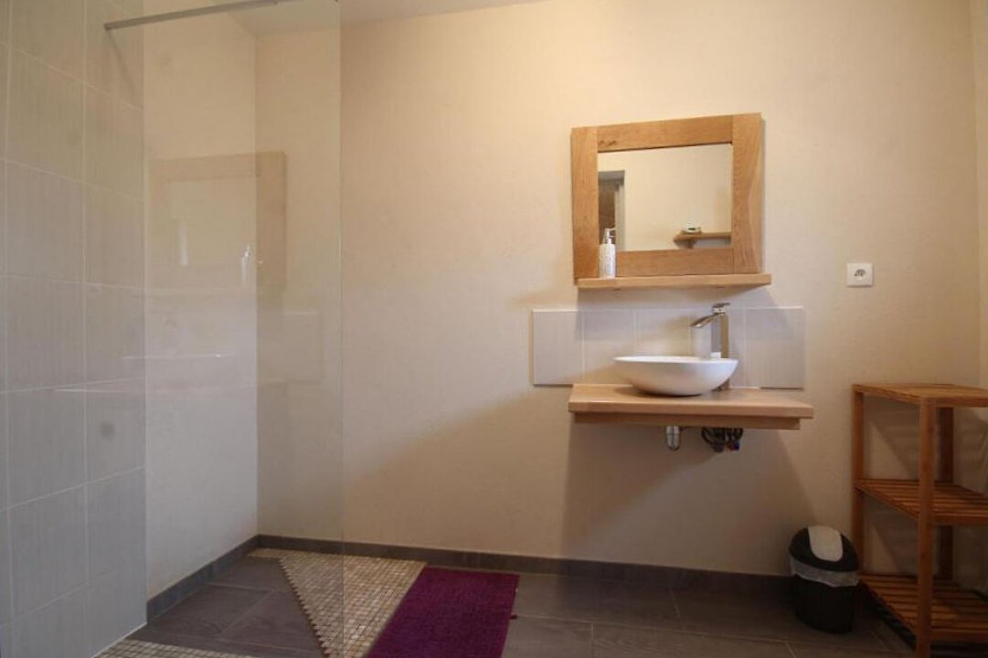 Notre hébergement de groupe de 100 m² en plein pied, composé de 3 chambres de 5 places offre un vrai confort car chaque chambre dispose de sa salle d'eau équipée d'une douche italienne et de WC séparé.