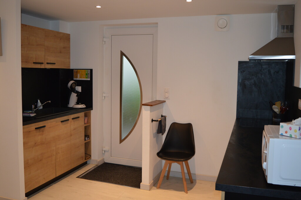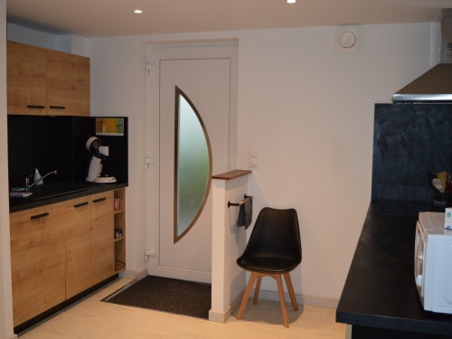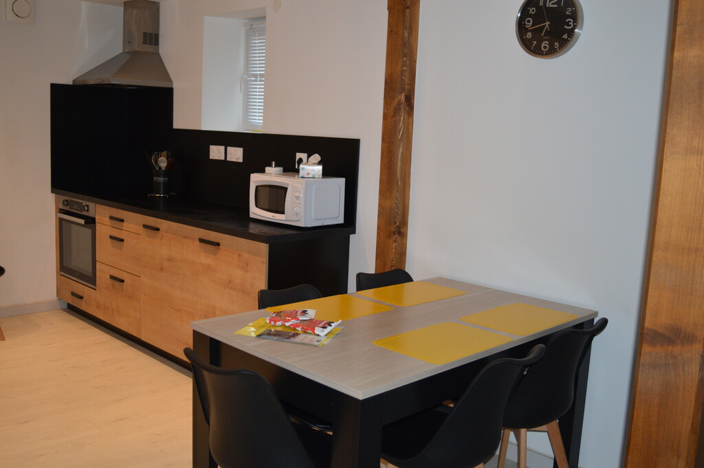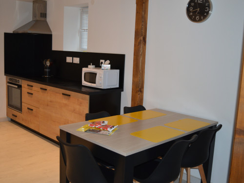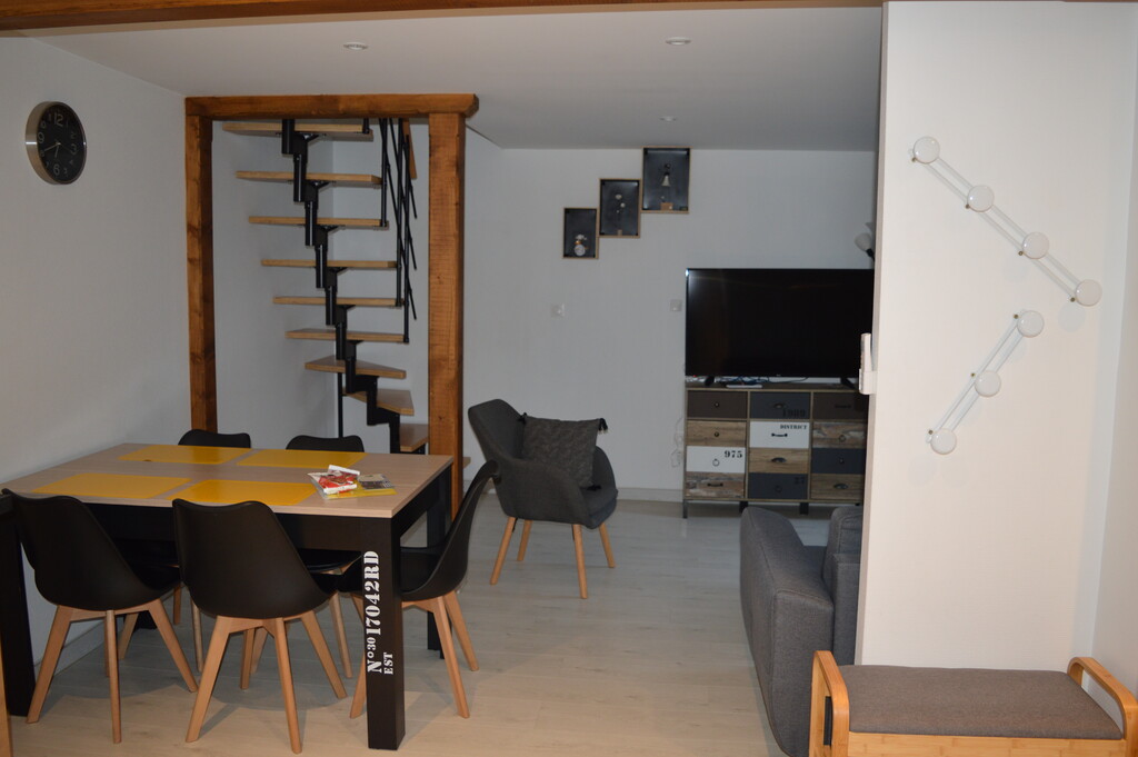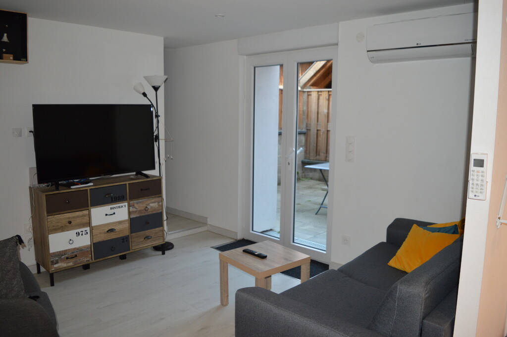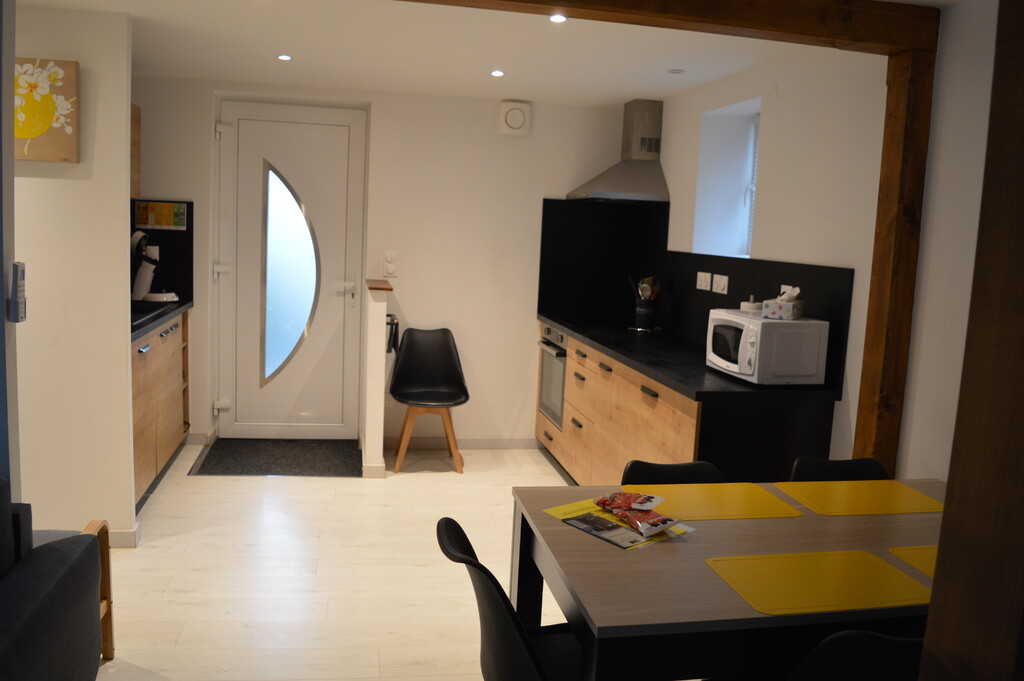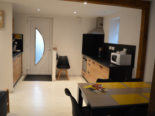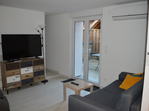 La pièce de vie, avec cuisine ouverte donne sur la terrasse privative avec barbecue et mobilier de jardin. Un canapé convertible est disponible dans le salon.