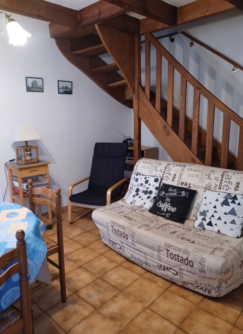 • au rez-de-chaussée : 1 pièce à vivre avec TV, jeux, lecture, 1 salle de bains baignoire/douche, WC indépendants, coin cuisine complet