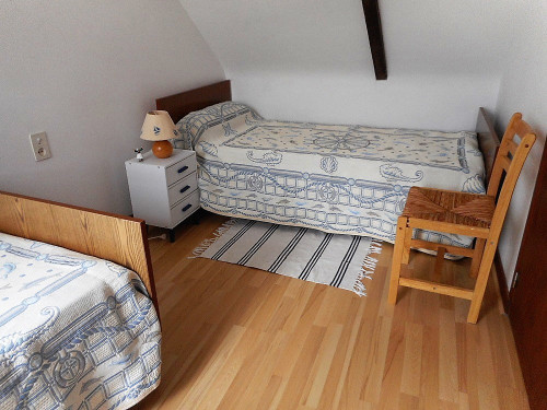 • à l'étage : 1 chambre avec lit double, penderie, coin informatique et 1 chambre avec 2 lits simples et penderie