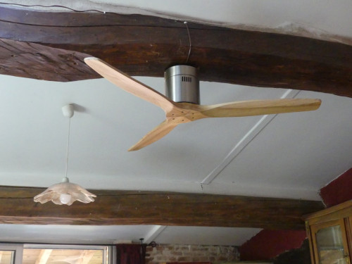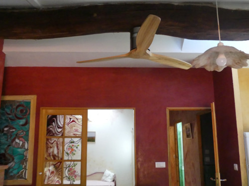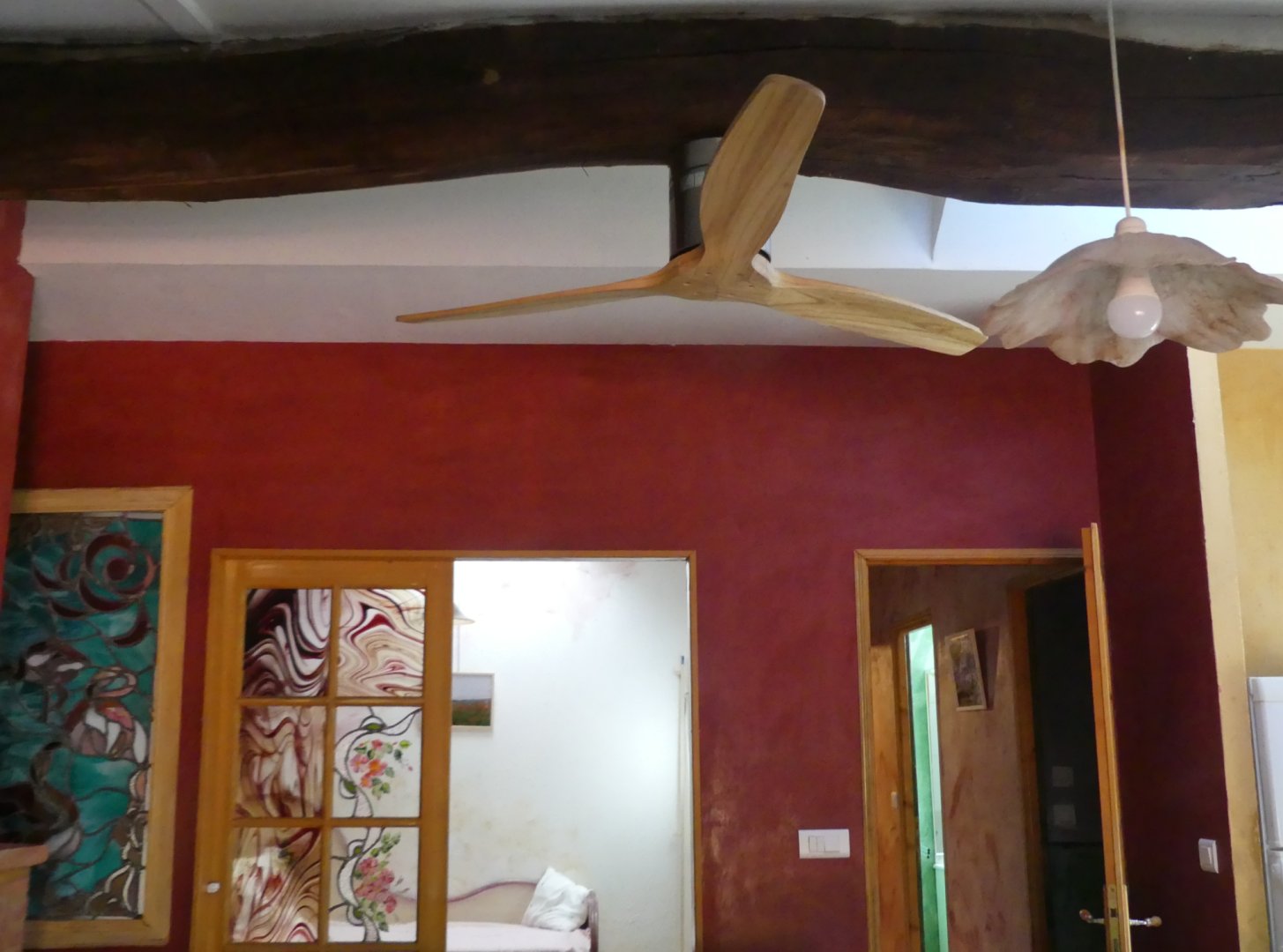 Pour en savoir plus : Réchauffement climatique : Nos deux gîtes sont traversants Nord/Sud. Les murs font 80 cm d'épaisseur, ne sont pas en béton mais en briques pleines dites « foraines », c'est un isolant à forte inertie. Comme partout dans le sud de la France, l'été, il faut fermer les fenêtres dans la journée et laisser grand ouvert la nuit (là où nous sommes situés, il n'y a aucun problème de sécurité des biens et des personnes). C'est le plus vieux système de climatisation : une circulation d'air traversante.. Le toit sur le balcon/terrasse protège des rayons directs. De plus, les arbres et lianes plantés le long des murs servent d'isolant naturels. En faisant attention, on reste en période très chaude dans des températures normales. Nous avons dans la pièce principale un ventilateur au plafond de type colonial, fort efficace, et un ventilateur colonne dans la chambre principale.