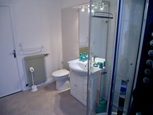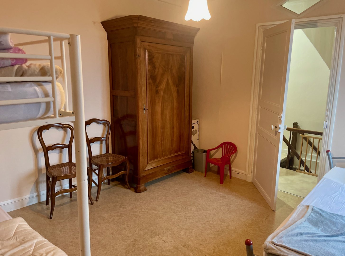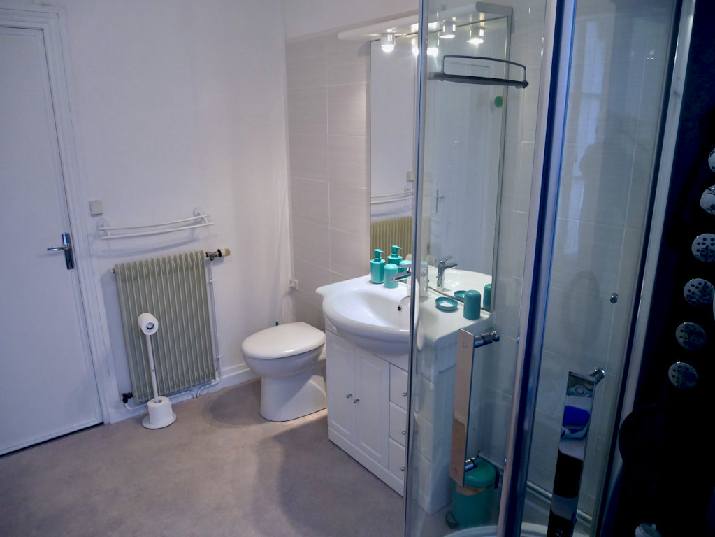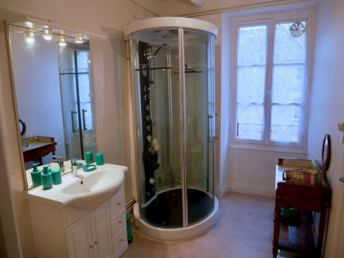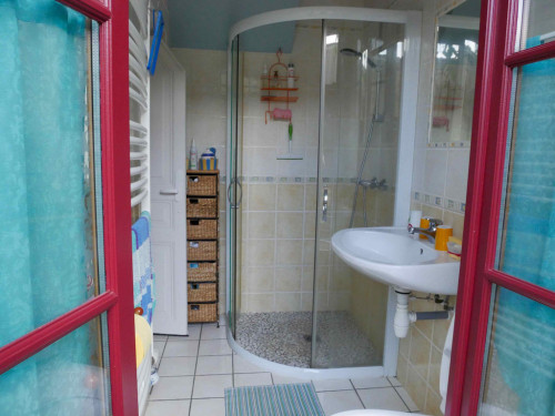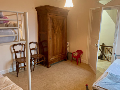 - à l'étage : une chambre (trois lit de 90) et une suite parentale : grande chambre (lit de 160) et salle d’eau privative avec WC