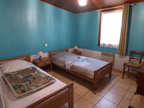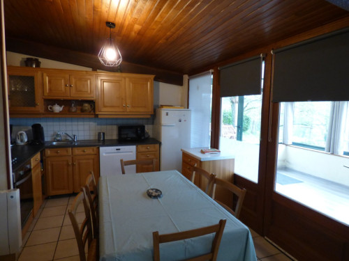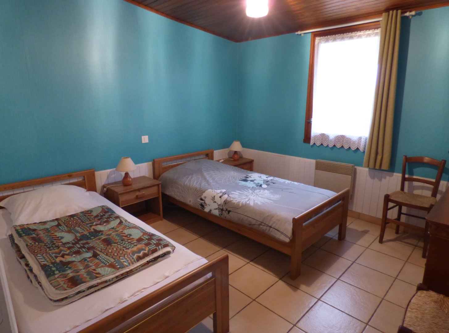 3 chambres, 1 avec un lit en 160 cm, 1 avec un lit en 140, une avec deux lits en 90 cm. 1 salle d'eau avec douche et WC, barbecue, jardin clos, véranda.